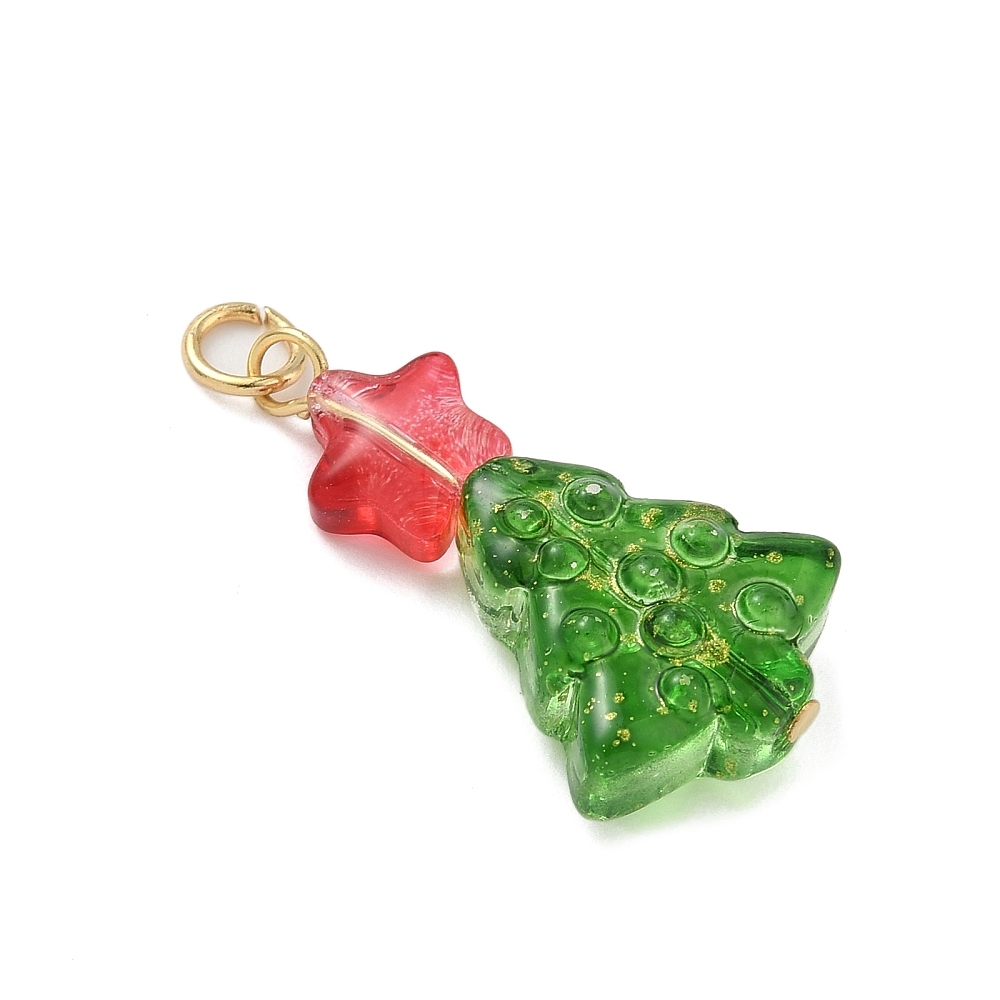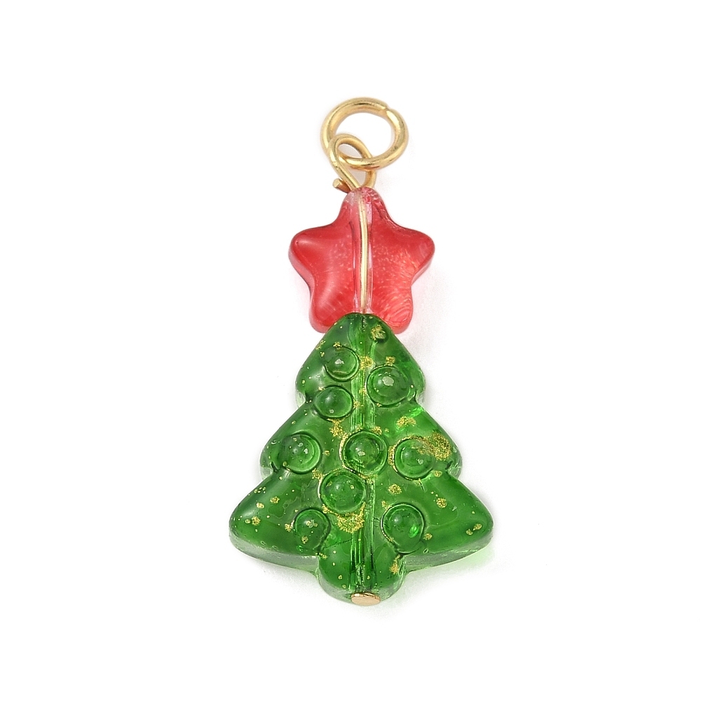 Оригинальная подвеска ручной работы из стекла в форме елочки со звездочкой (раздельные элементы) отлично подойдет для создания различных украшений и создаст особое новогоднее настроение.