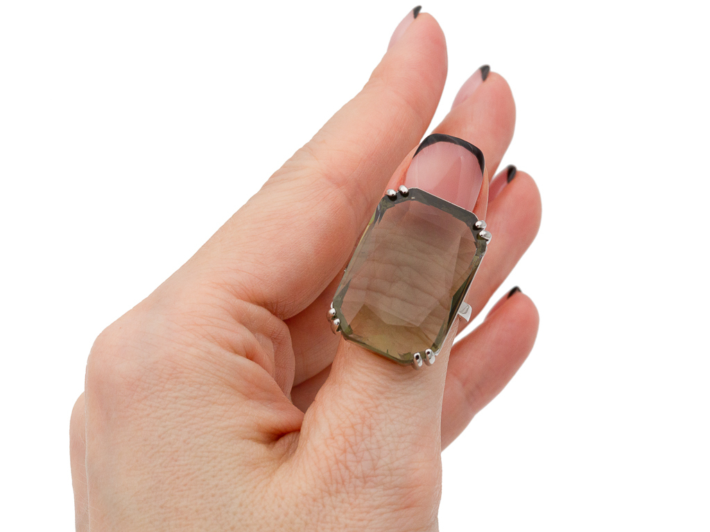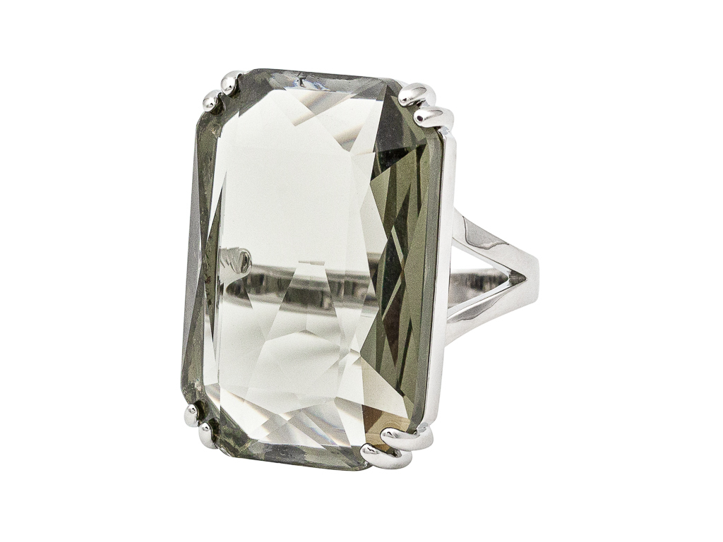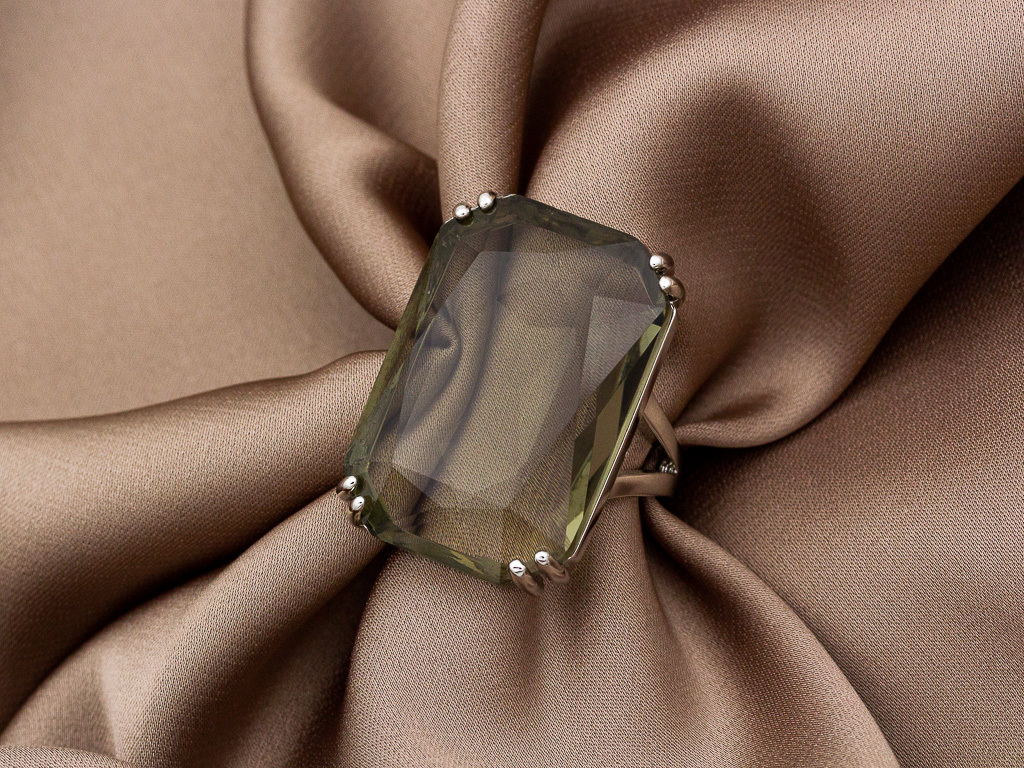 Крупное разъемное кольцо с кристаллом прямоугольной формы ювелирной огранки, смотрится стильно, обращает внимание на уникальность своей обладательницы. Оригинальный дизайн прекрасно дополнит образ, подчеркнув Ваш вкус и женственность.