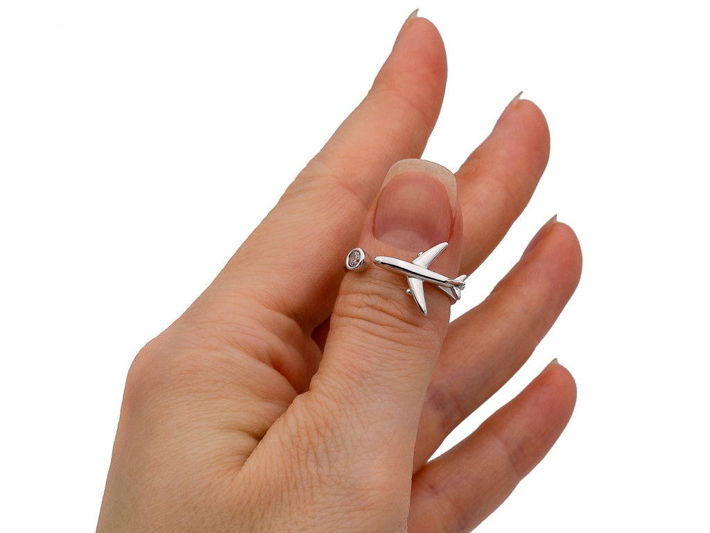Разъемное кольцо в форме самолета для тех, кто умеет мечтать. Колечко смотрится стильно, дополнит образ, подчеркнув вашу индивидуальность. Такое кольцо станет настоящей находкой для любителей эксклюзивных украшений.