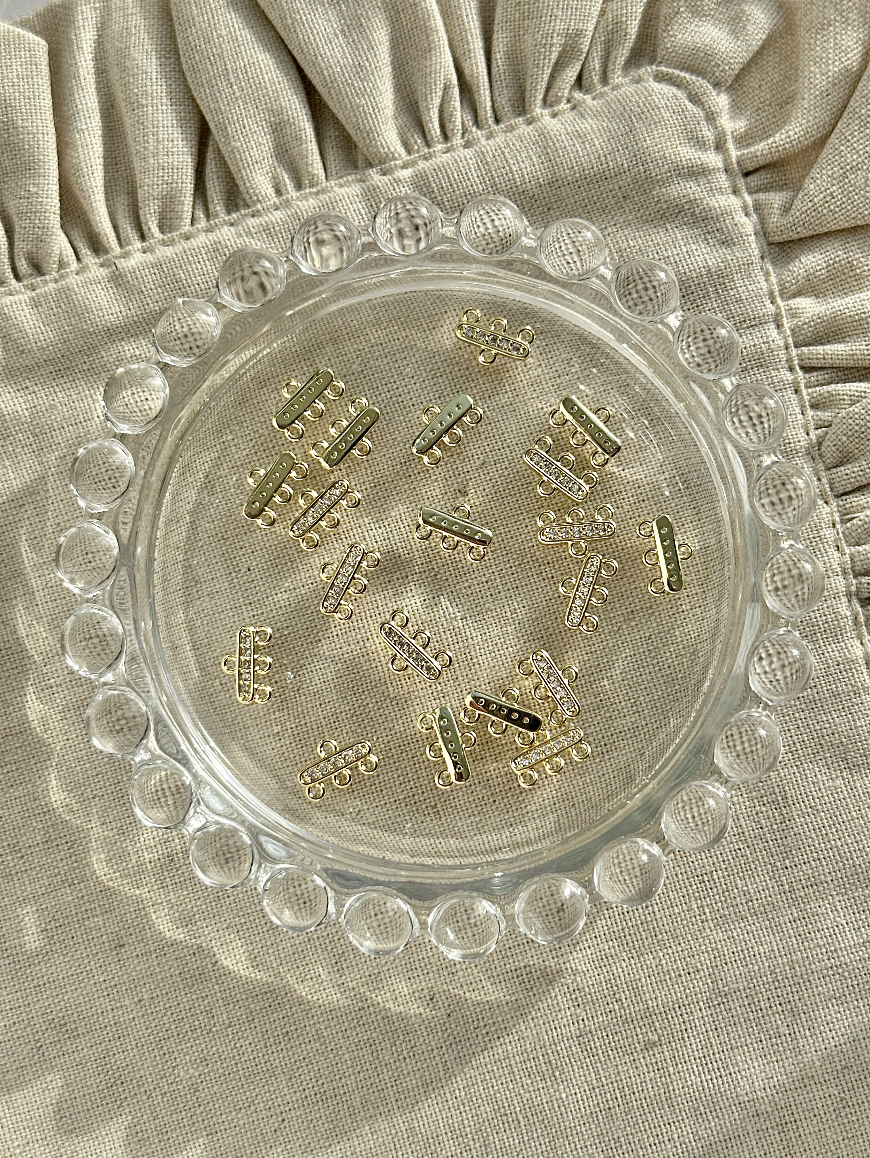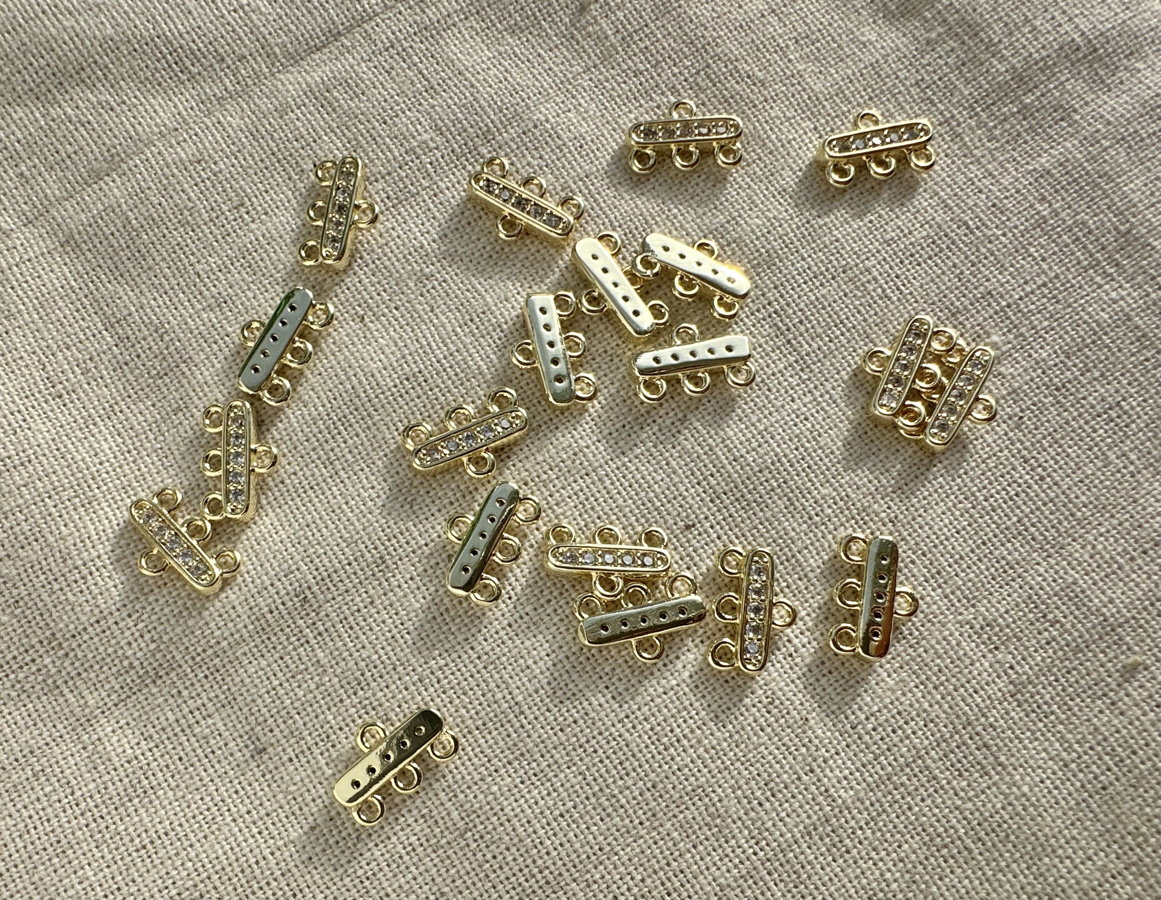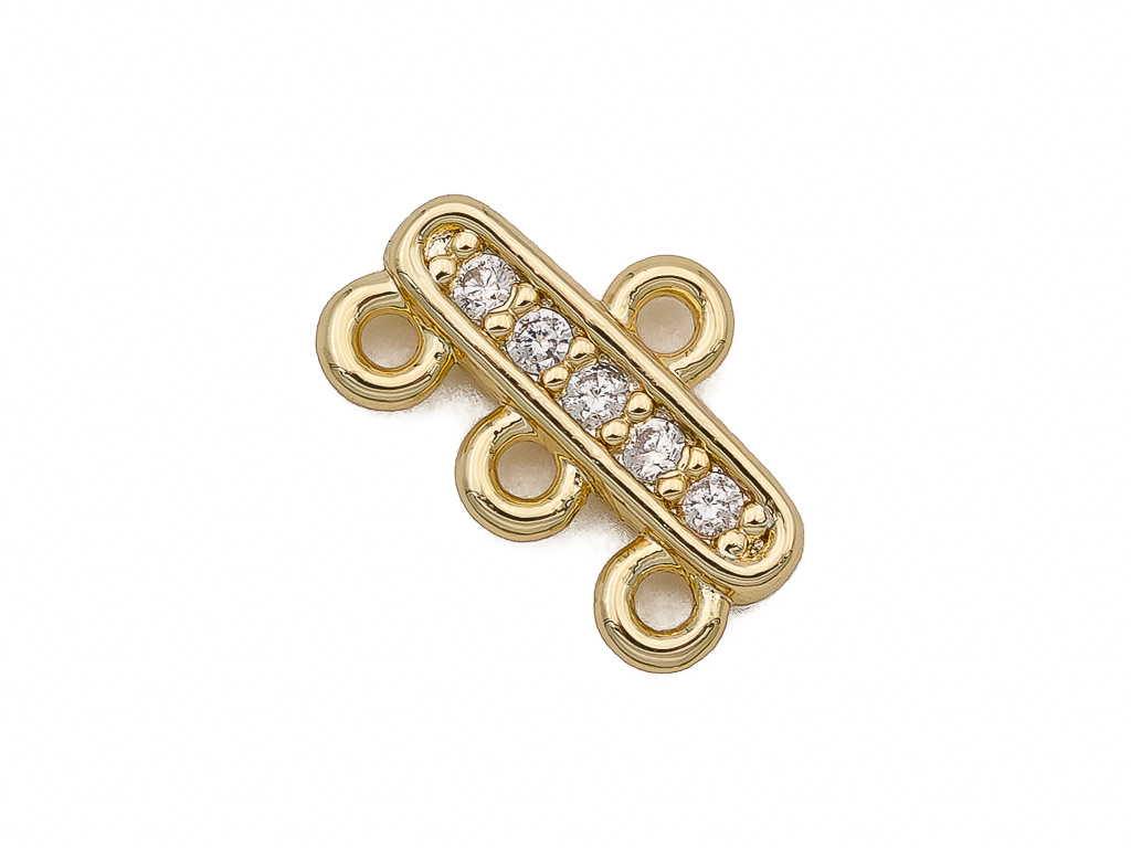 Небольшой коннектор со стразами на три нити бусин или цепочки. Подойдет для некрупных бусин (до 3-4мм).