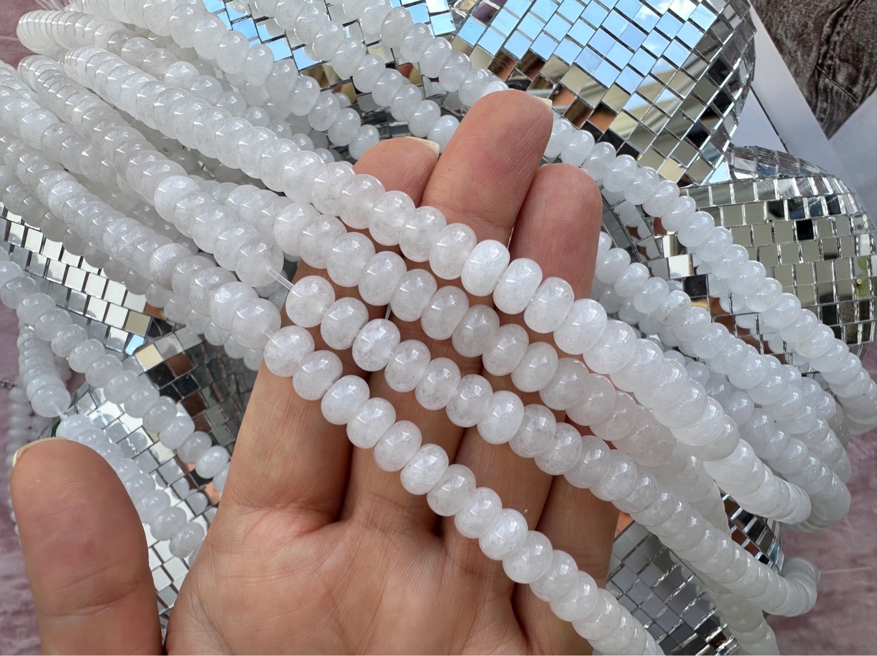 Бусины из кварца в форме ронделя могут использоваться для создания любых видов украшений, в том числе идеально подойдут на чокер или браслет. Бусины отлично сочетаются с различными материалами: натуральным жемчугом, перламутром, а также металлическими бусинами и подвесками. Бусины в нитке неоднородны, не одинаковы по размеру, толщине, отличаются по цвету.