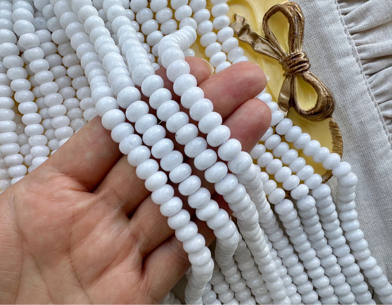 Бусины из кварца в форме ронделя могут использоваться для создания любых видов украшений, в том числе идеально подойдут на чокер или браслет. Бусины отлично сочетаются с различными материалами: натуральным жемчугом, перламутром, а также металлическими бусинами и подвесками. Бусины в нитке неоднородны, не одинаковы по размеру, толщине, отличаются по цвету.
