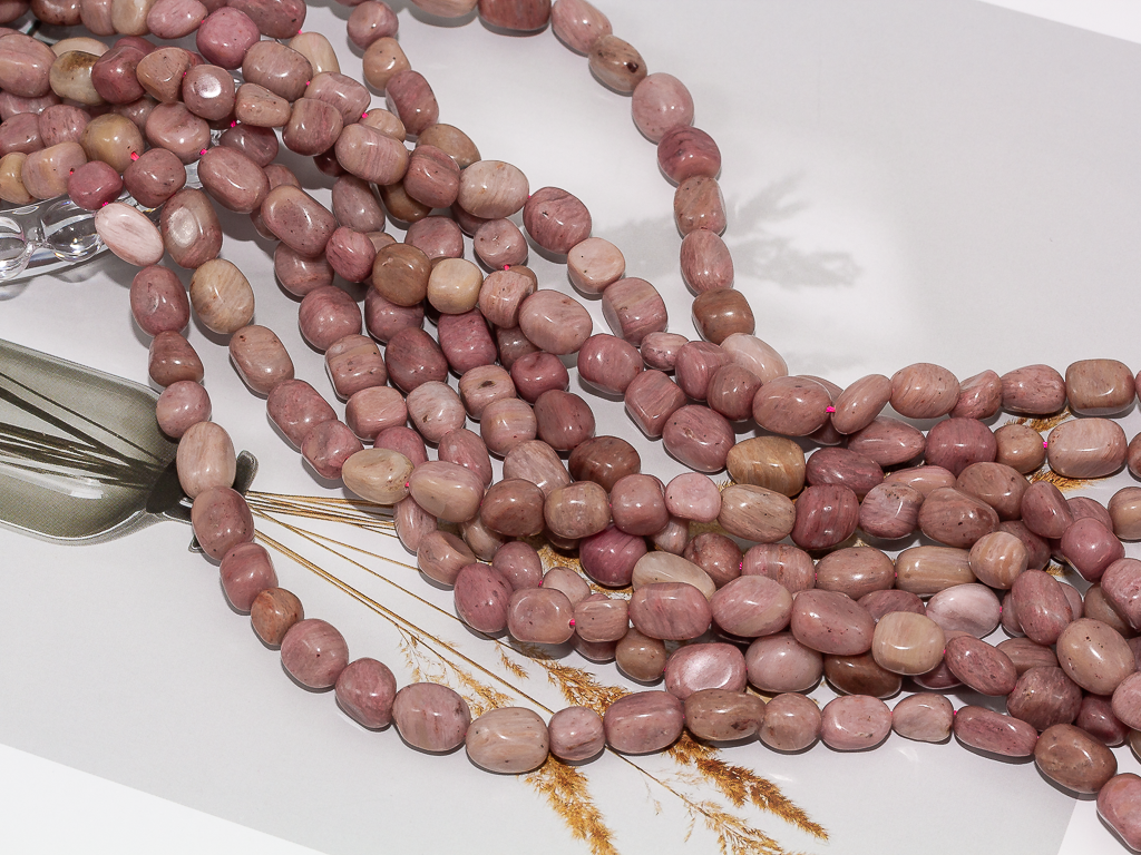 Бусины из родонита нежного розового цвета можно использовать для создания любых видов украшений, идеально подойдут на колье, чокер, браслет, серьги. Камни в нитке неоднородны, отличаются по цвету и размеру.