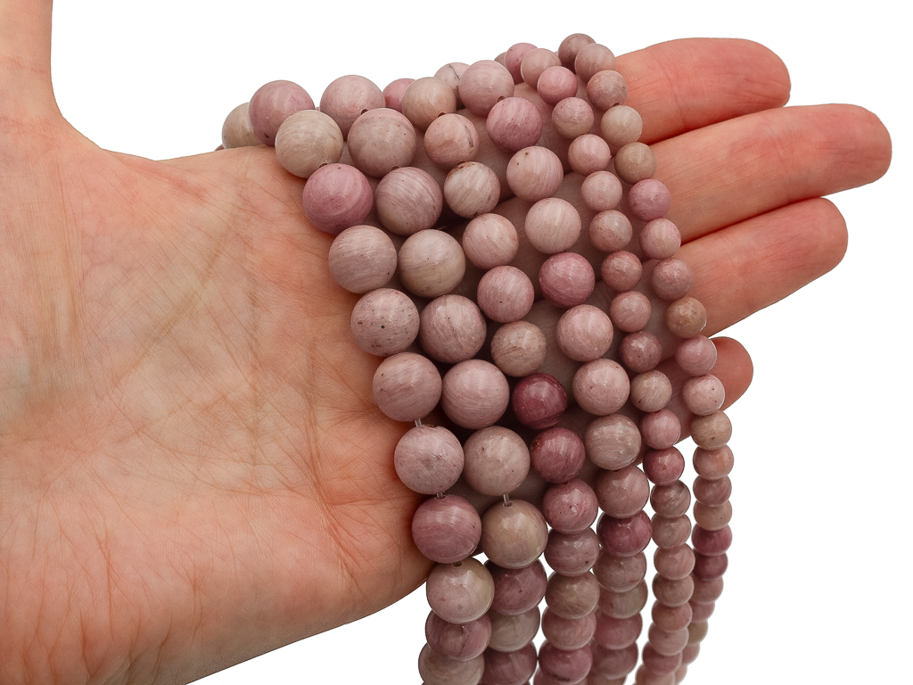 Круглые гладкие бусины из родонита можно использовать для любых видов украшений, идеально подойдет для браслета, колье, чокера, сережек. Камни в нитке неоднородны, могут немного отличаются по цвету и размеру.