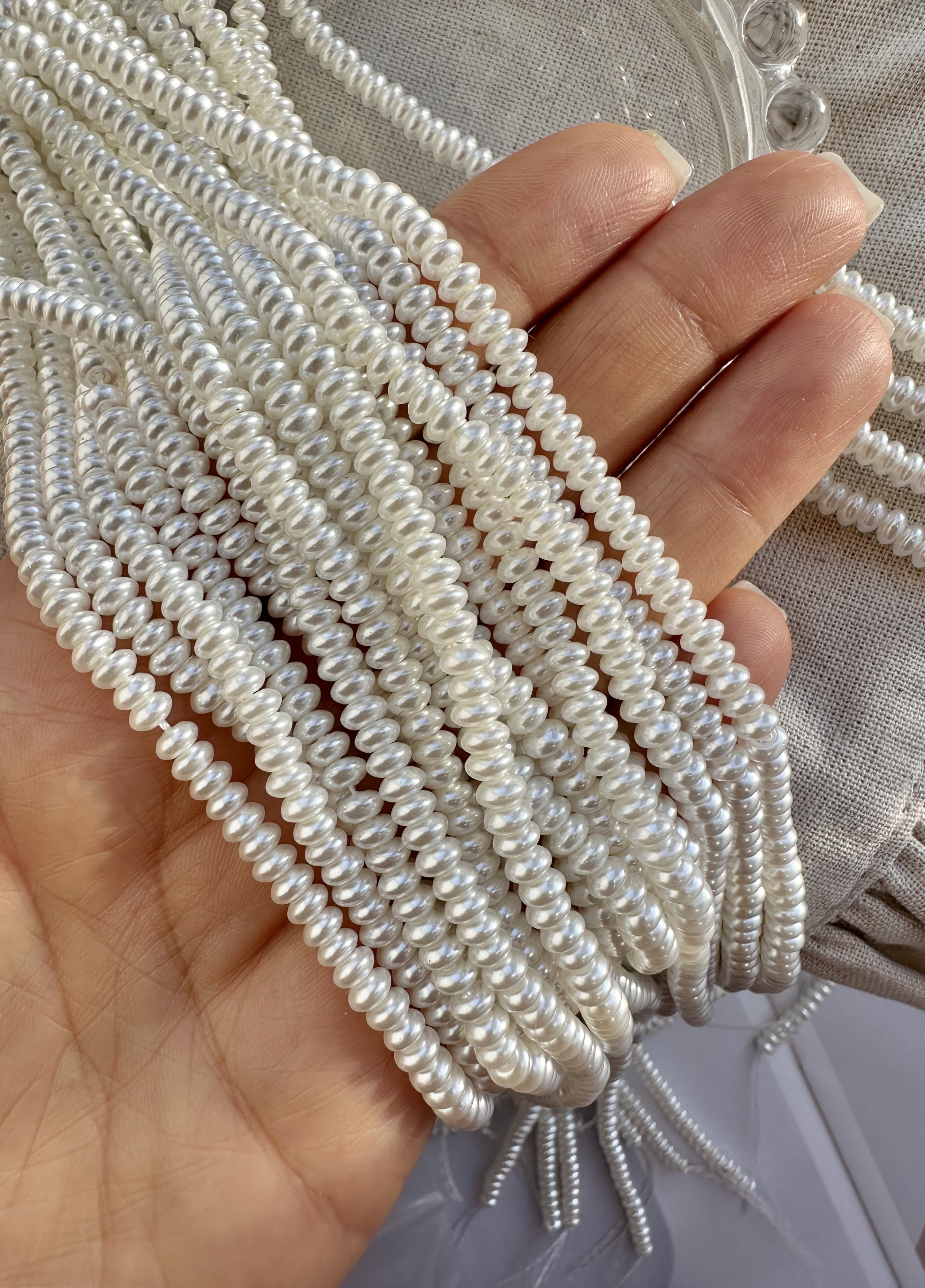 Нить бусин-имитации жемчуга можно использовать для любых видов украшений, идеально подойдут на чокер, браслет, кольцо, серьги.