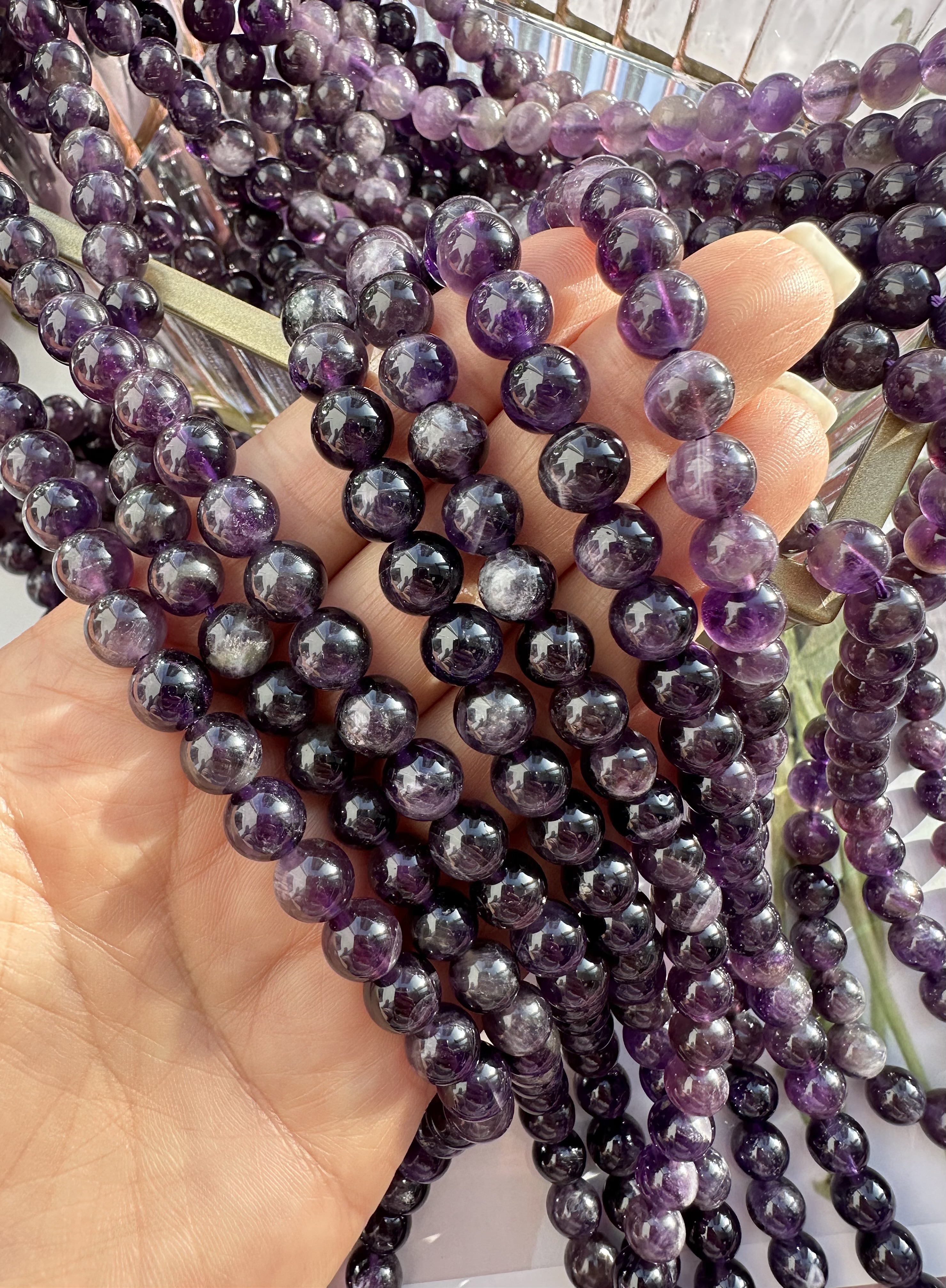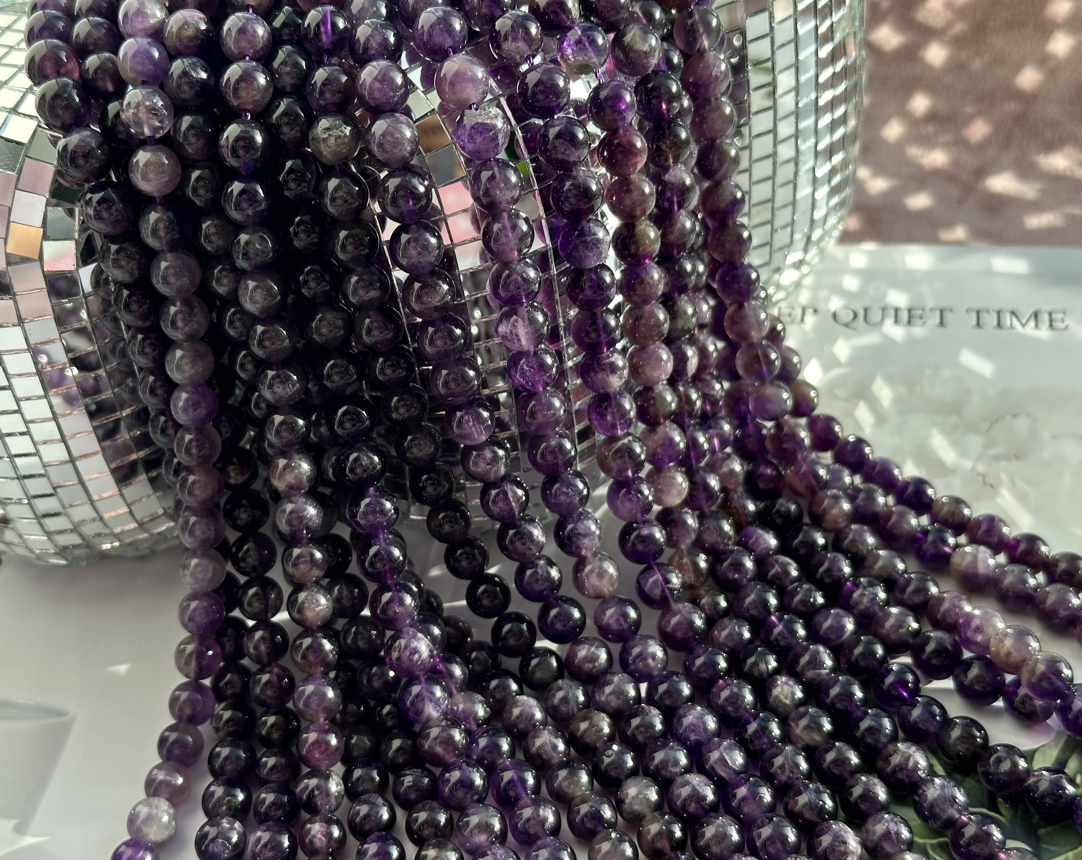 Бусины из аметиста можно использовать для любых видов украшений, идеально подойдет для браслета, колье, чокера, сережек. Бусины круглые, гладкие. Камни в нитке неоднородны, немного отличаются по цвету и размеру.