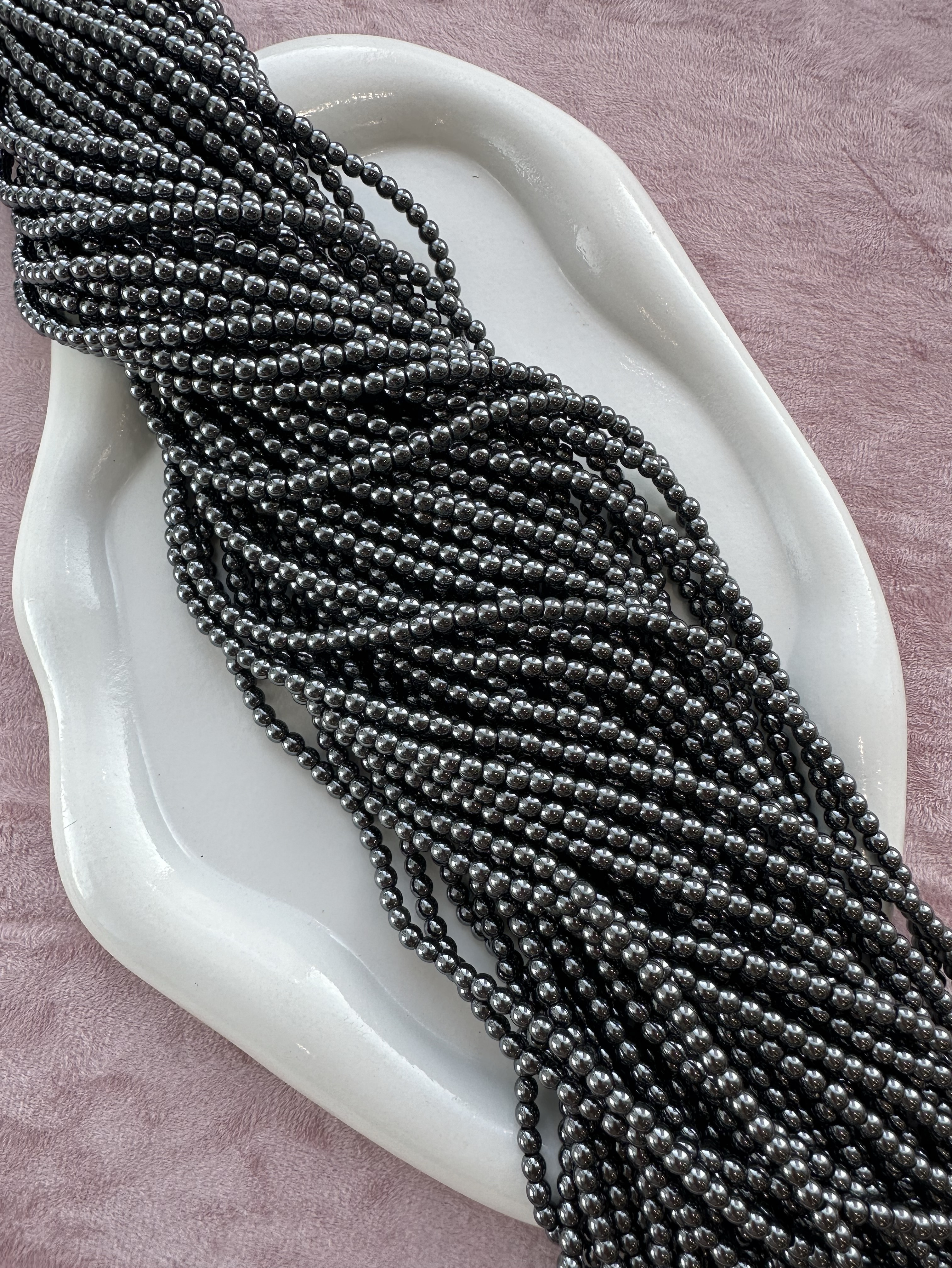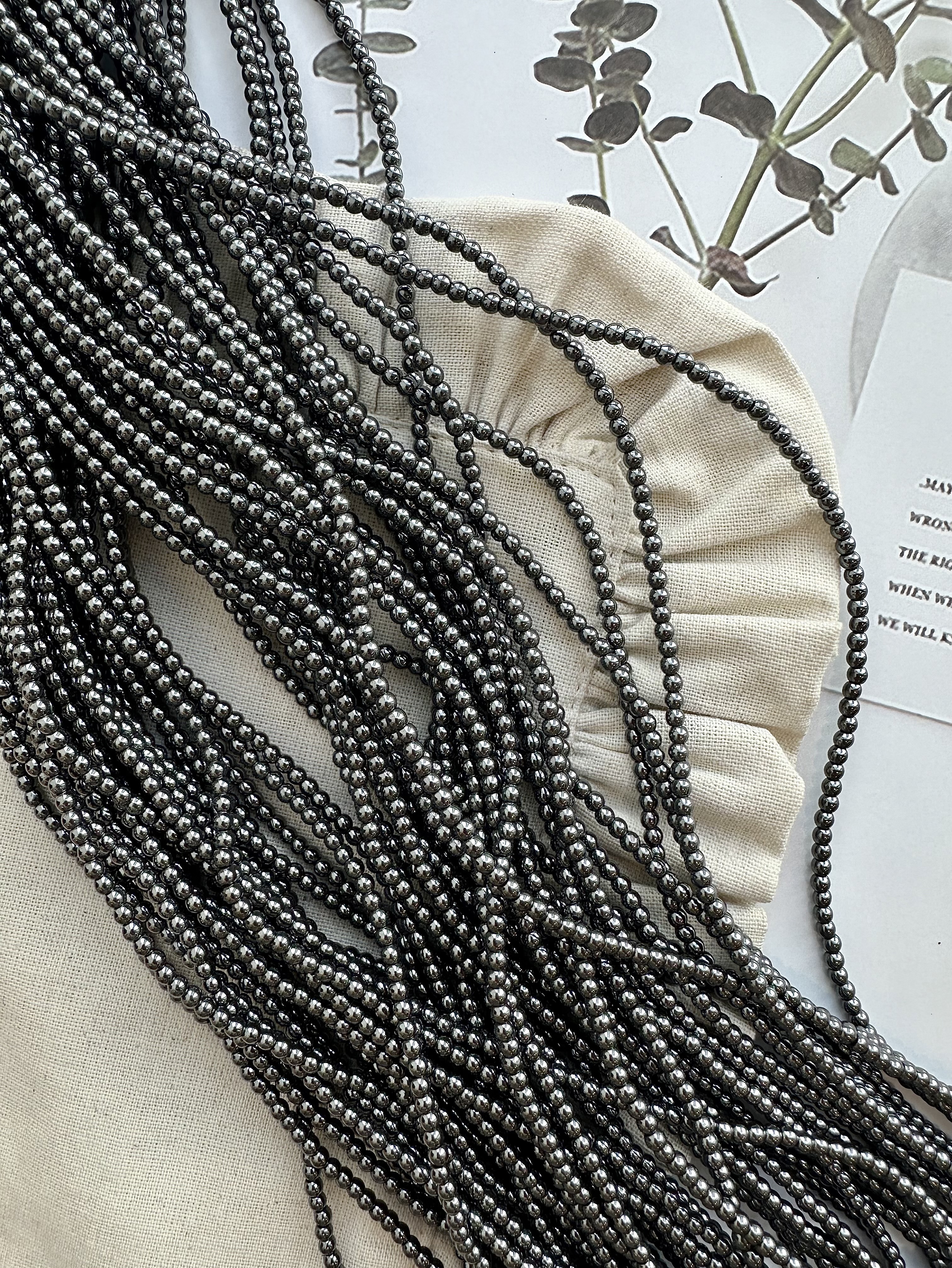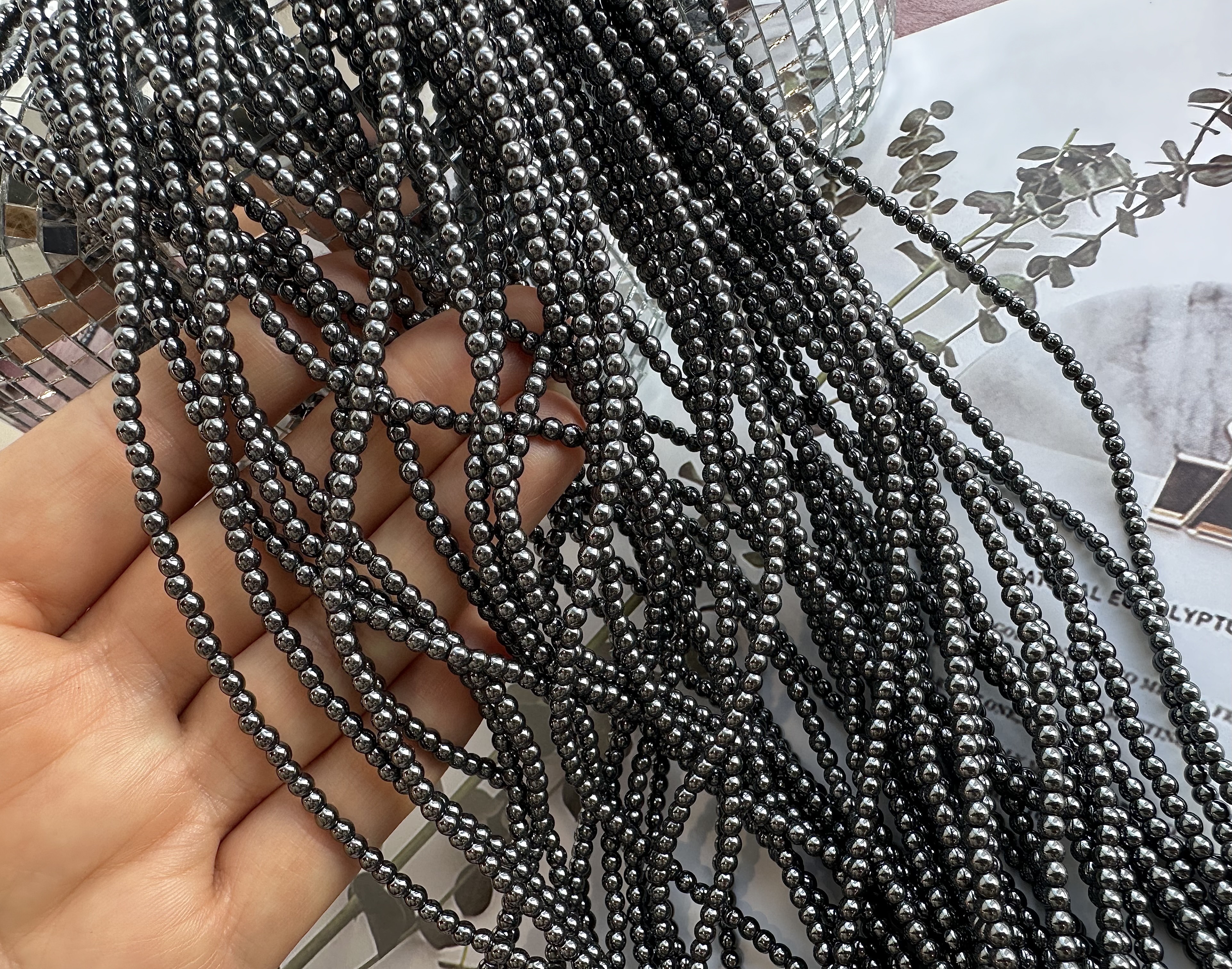 Бусины из синтетического гематита используют для создания любых видов украшений, идеально подойдут для браслета, колье, чокера, сережек. Бусины из синтетического гематита круглой формы, с покрытием. Камни в нитке неоднородны, могут незначительно отличаются по цвету и размеру, не магнитятся.