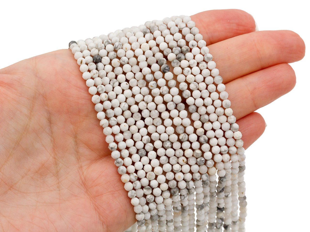 Круглые бусины из говлита ювелирной огранки используют для любых видов украшений, идеально подойдет для браслета, колье, чокера, сережек.