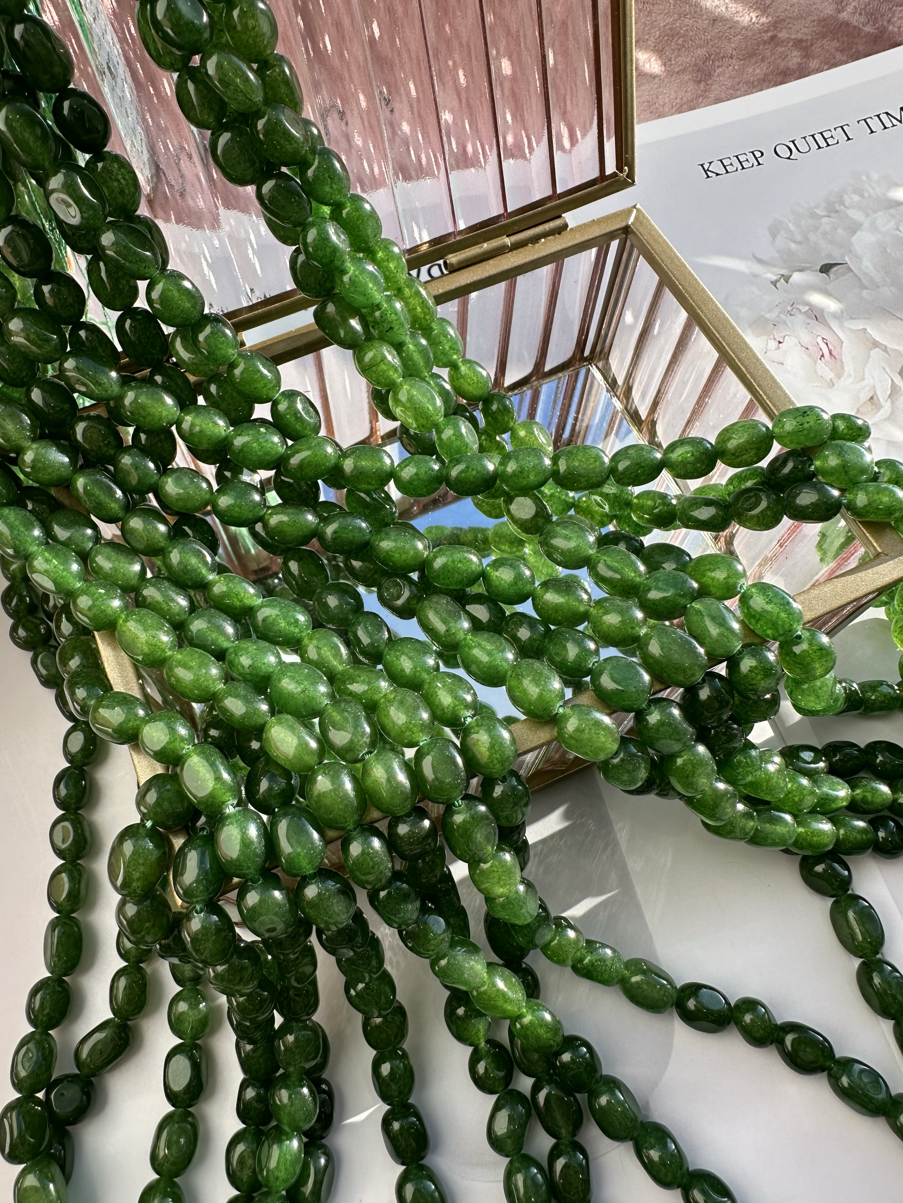 Бусины из кварца можно использовать для создания любых видов украшений, идеально подойдут на колье, чокер, браслет, серьги. Камни в нитке неоднородны, отличаются по цвету и размеру.