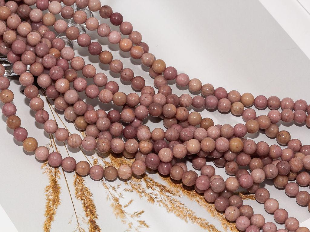 Круглые гладкие бусины из родонита можно использовать для любых видов украшений, идеально подойдет для браслета, колье, чокера, сережек. Камни в нитке неоднородны, могут немного отличаются по цвету и размеру.