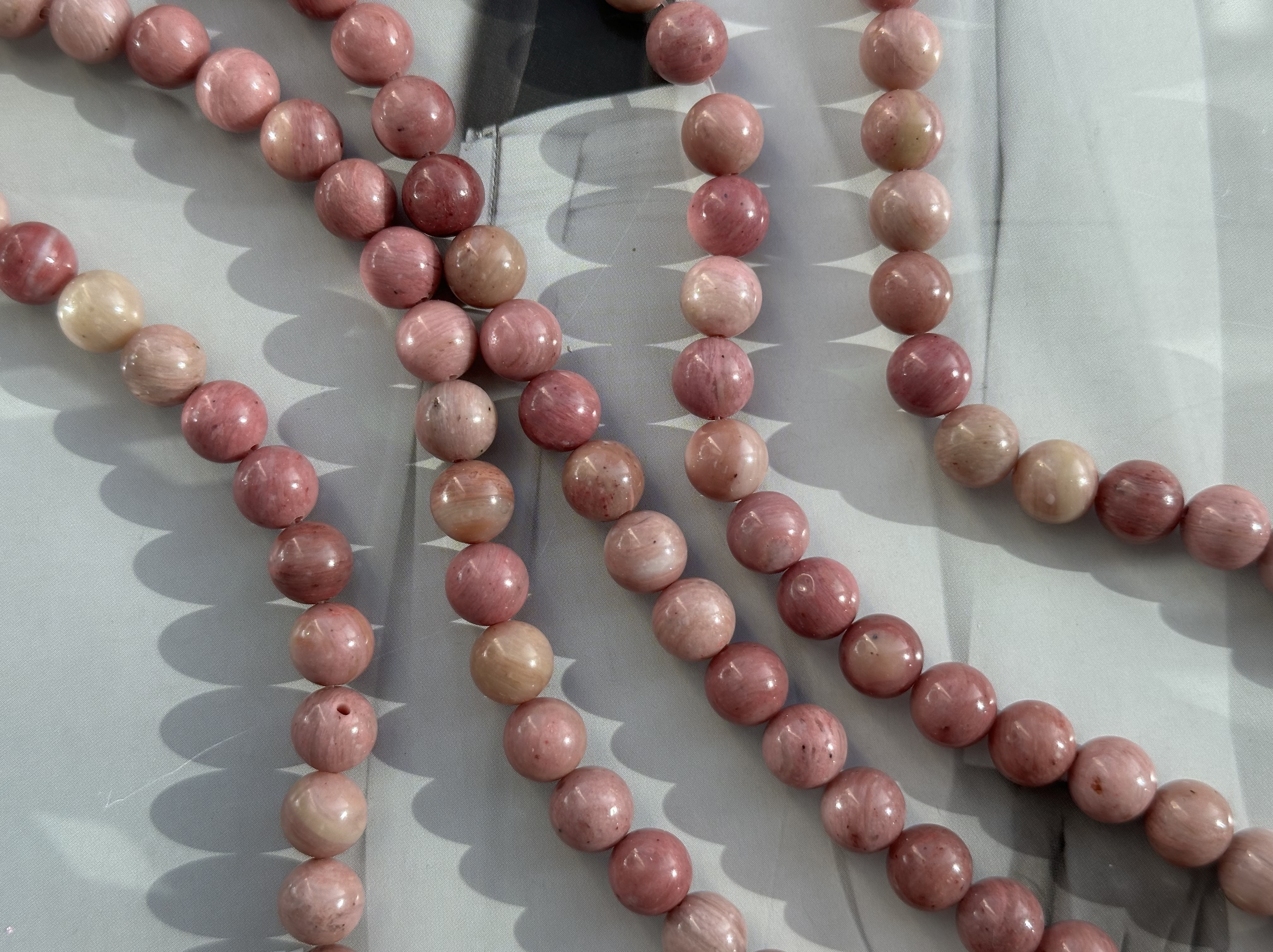 Круглые гладкие бусины из родонита можно использовать для любых видов украшений, идеально подойдет для браслета, колье, чокера, сережек. Камни в нитке неоднородны, могут немного отличаются по цвету и размеру.