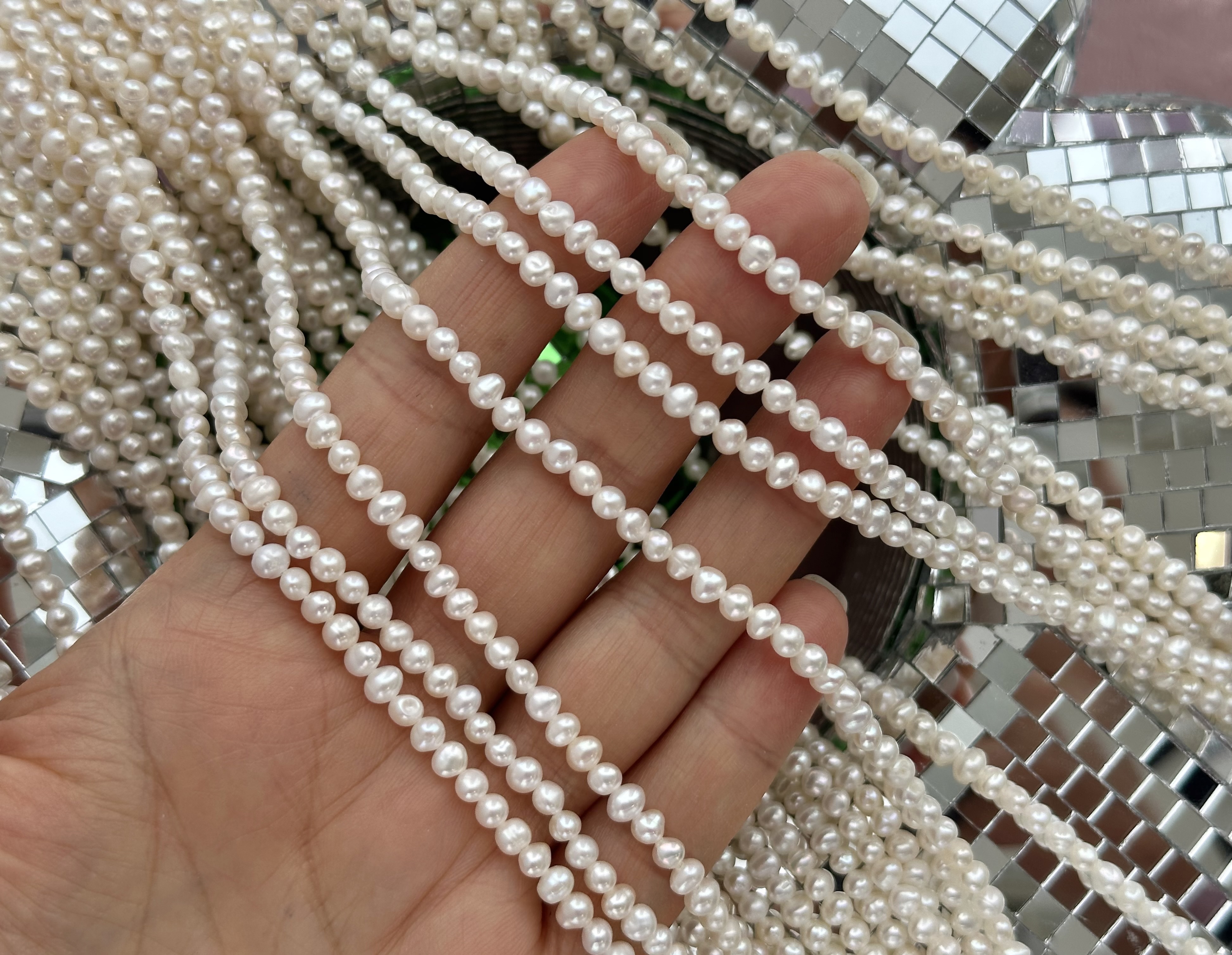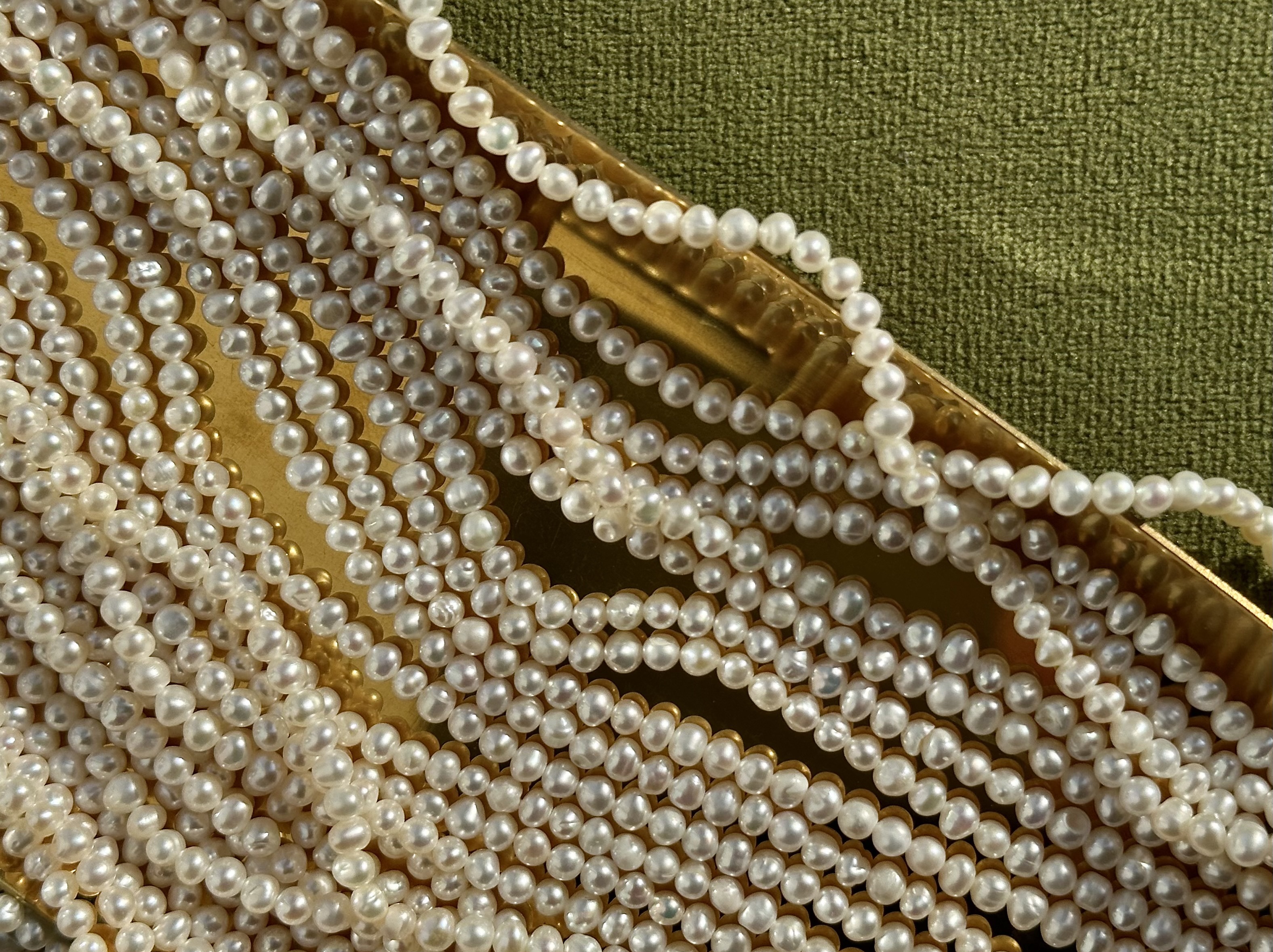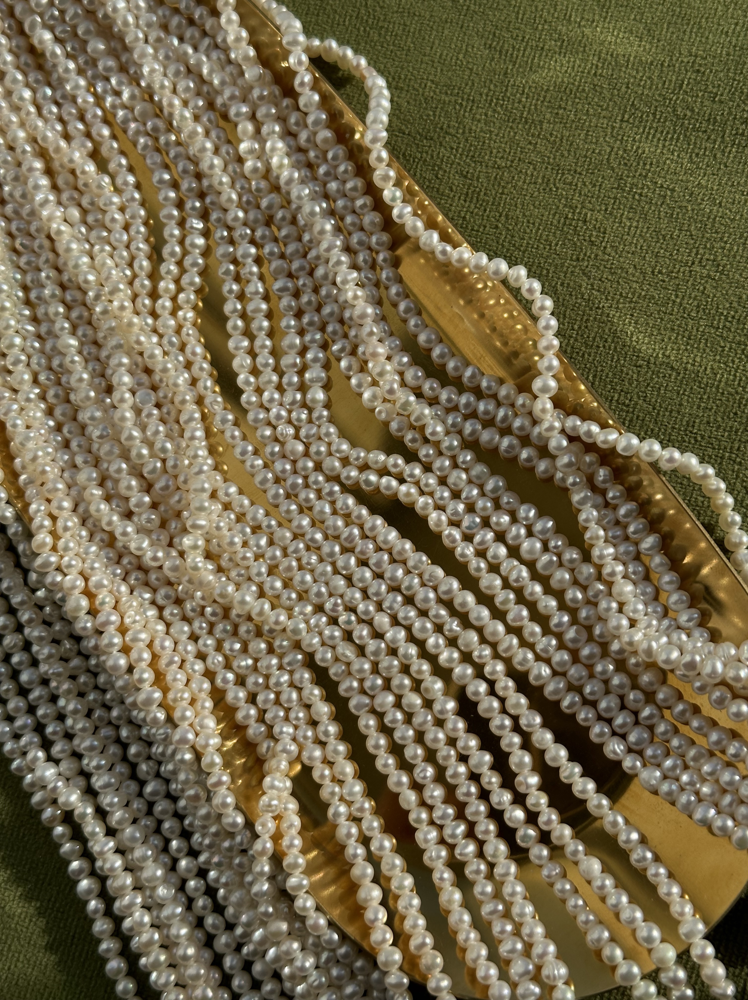Натуральный речной жемчуг можно использовать для любых видов украшений, идеально подойдут на чокер, браслет, кольцо. Жемчуг в нитке неоднороден, форма не идеальна, бусины немного приплюснуты.