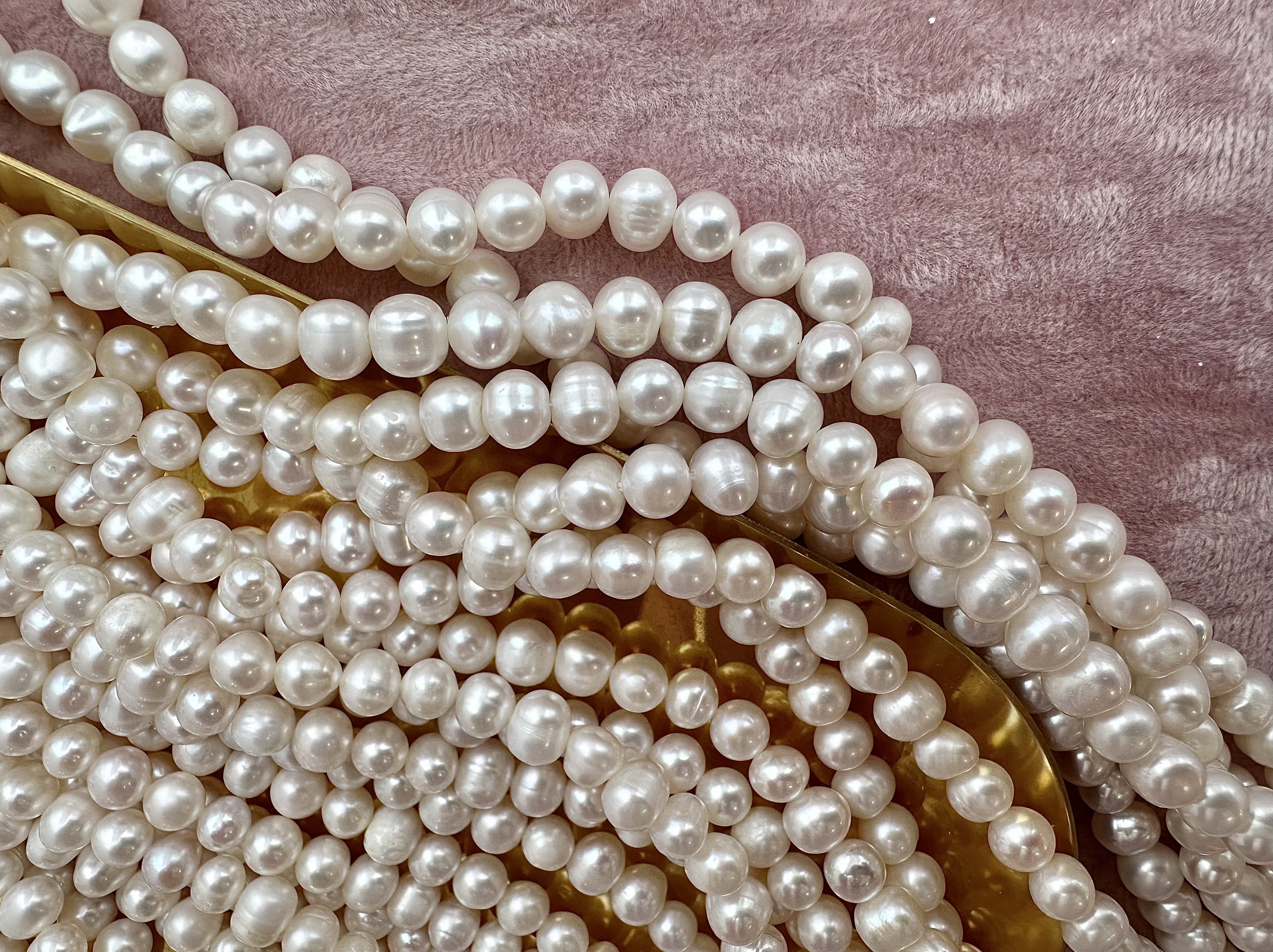 Натуральный речной жемчуг отлично подойдет для колье, браслетов.