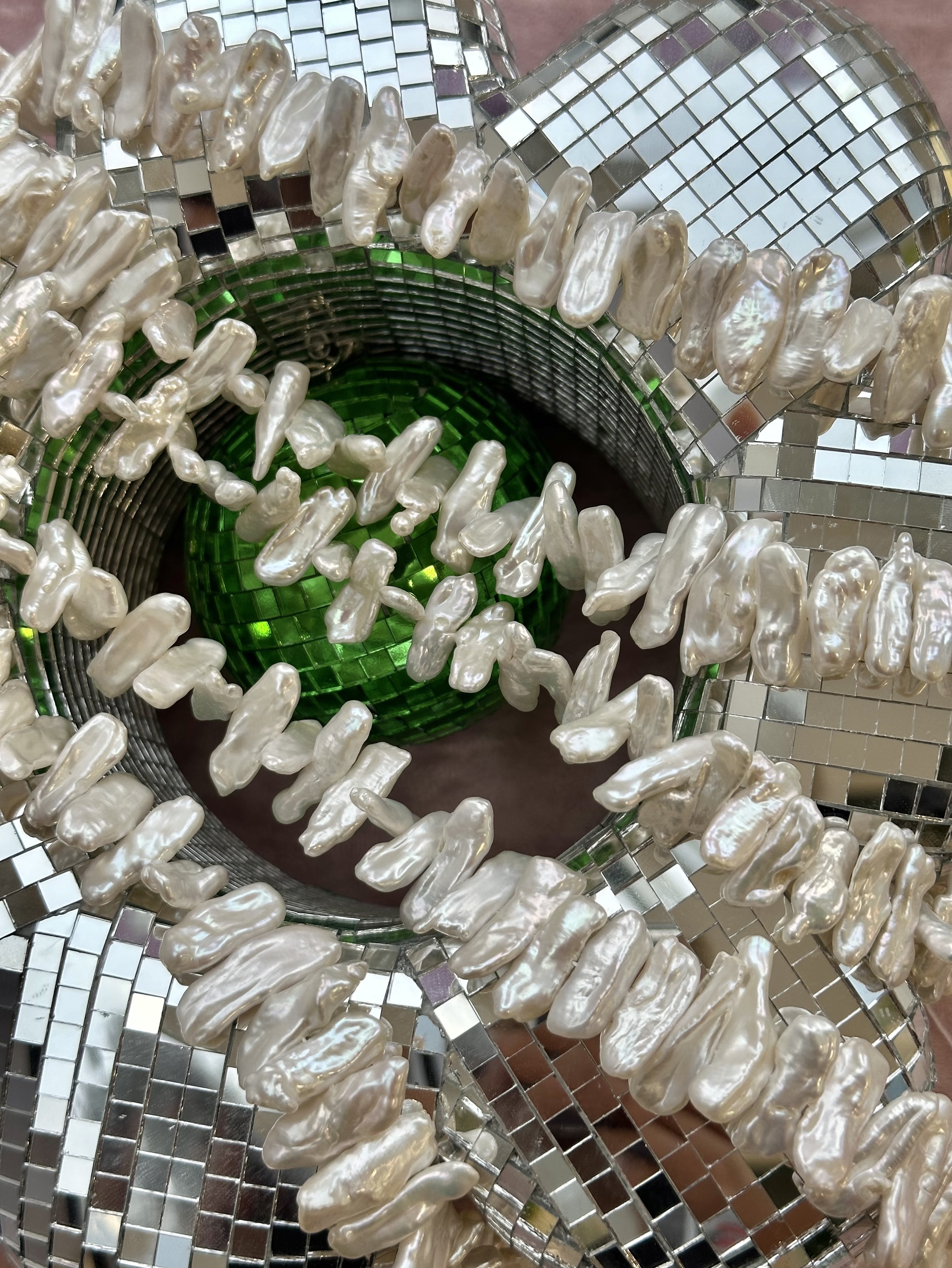 Натуральный барочный жемчуг. Форма не идеальна, вытянутая.