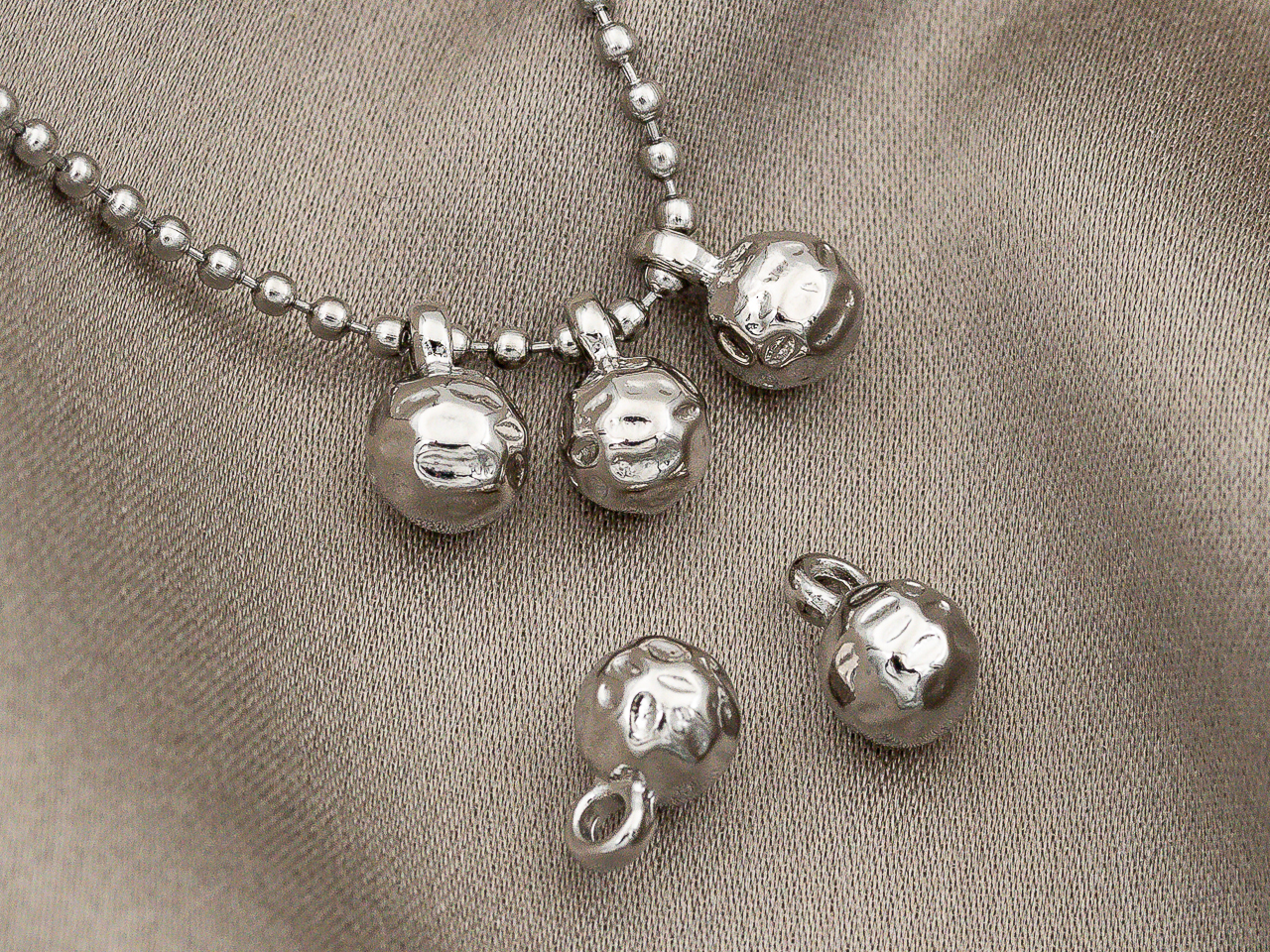 Миниатюрный, изящный кулончик в форме шара с эффектом мятого металла отлично подойдет в качестве подвеса для чокера, браслета, колечка, сережек