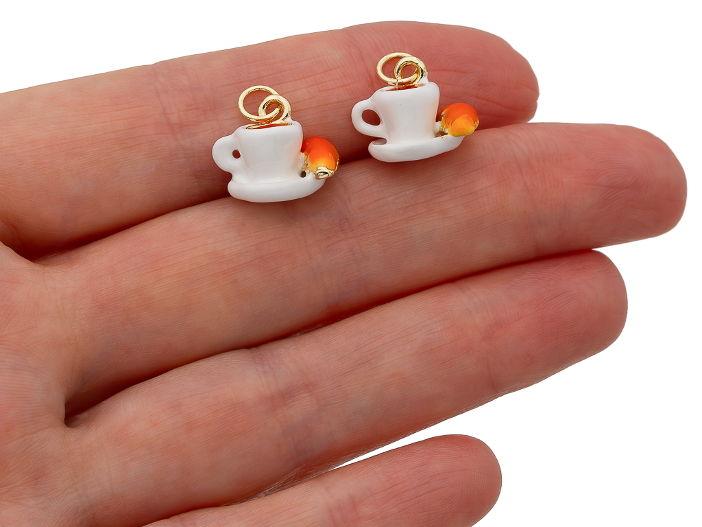 Небольшая, оригинальная подвеска в форме чашечки кофе с круассаном станет настоящей находкой для любителей эксклюзивных украшений. Подвеска отлично подойдет для создания любых украшений: серьги, чокер, колье. Эффектный аксессуар поможет создать вам модный и интересный образ.