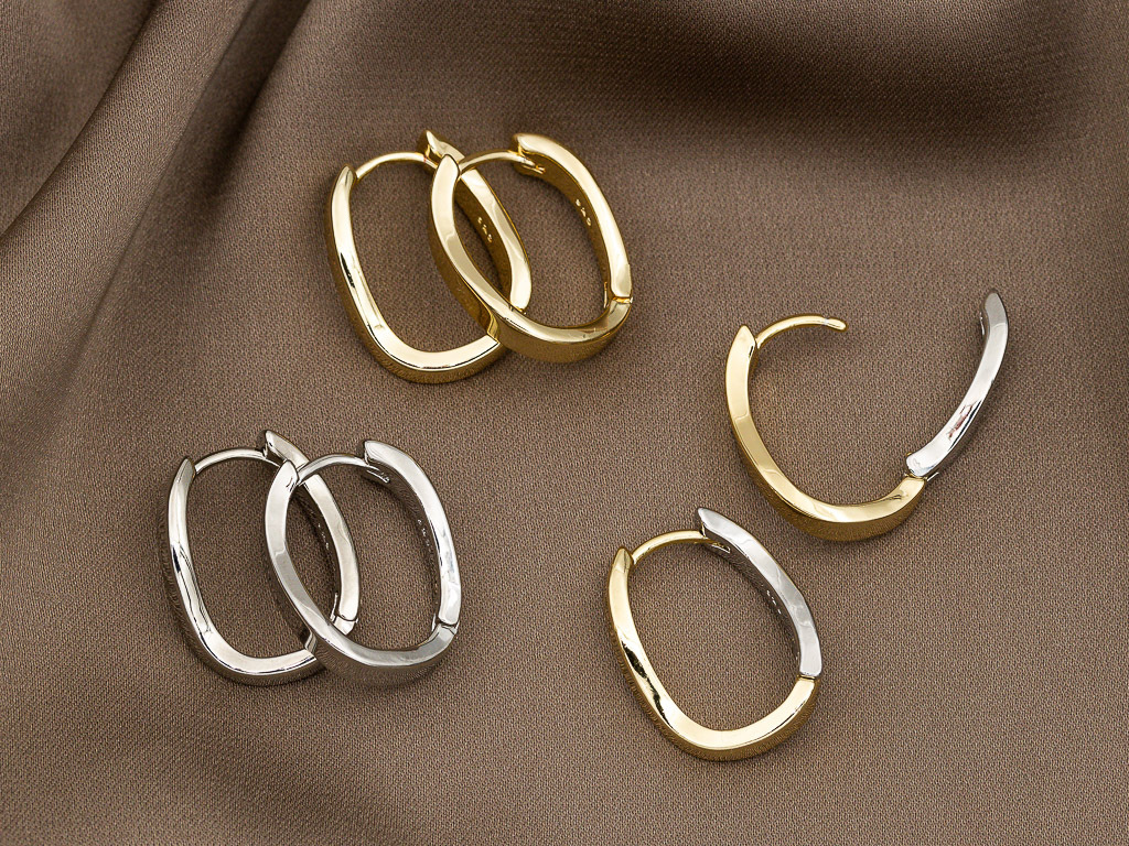 Серьги-кольца (серьги Конго) по-прежнему очень актуальны и популярны. Необычная модель серег овальной формы смотрится стильно, эффектно. Серьги удобны в носке, можно дополнить съемными подвесками, каменными ронделями.