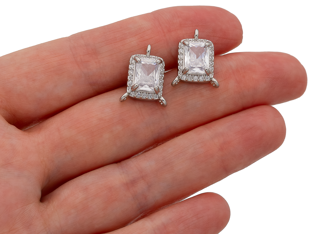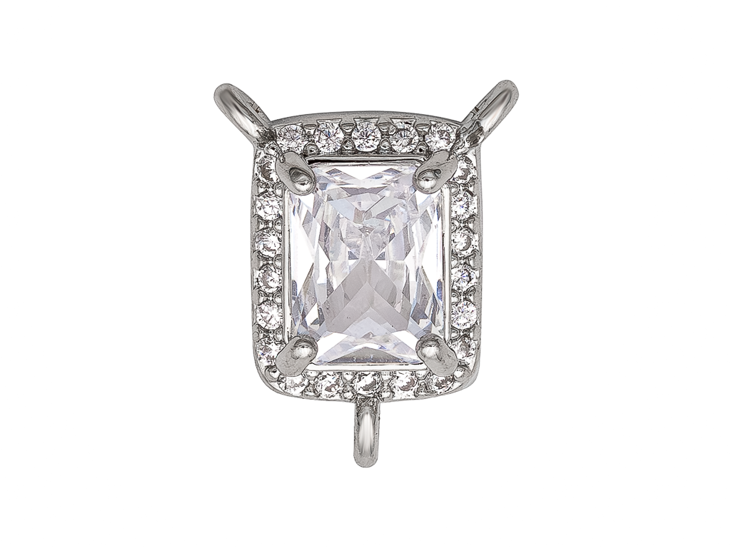 Небольшая подвеска-коннектор прямоугольной формы, украшенная кристаллом ювелирной огранки в обрамлении микро страз, отлично подойдет для создания чокера, колье, браслета, серег.