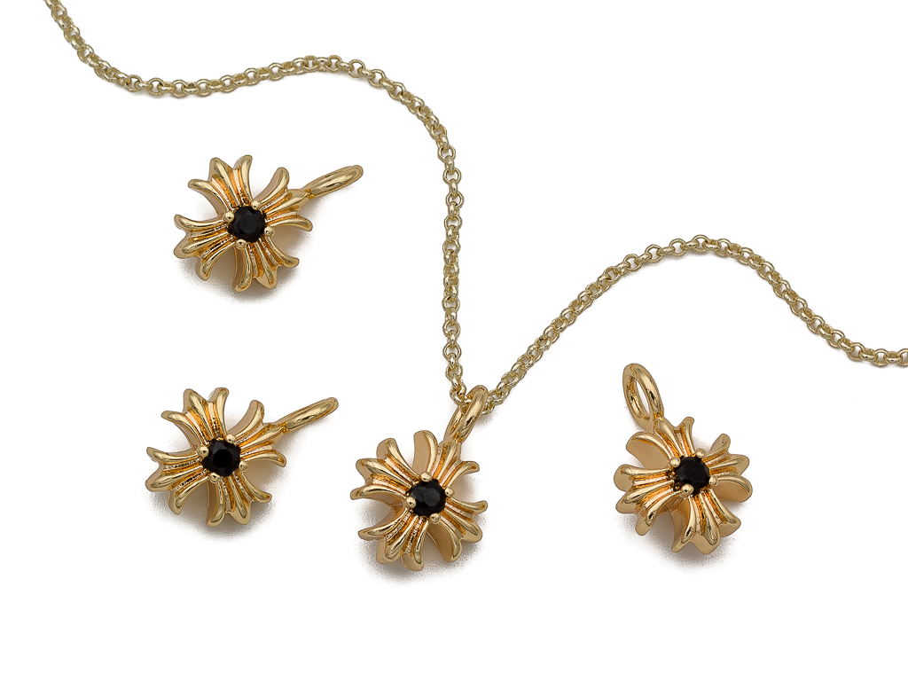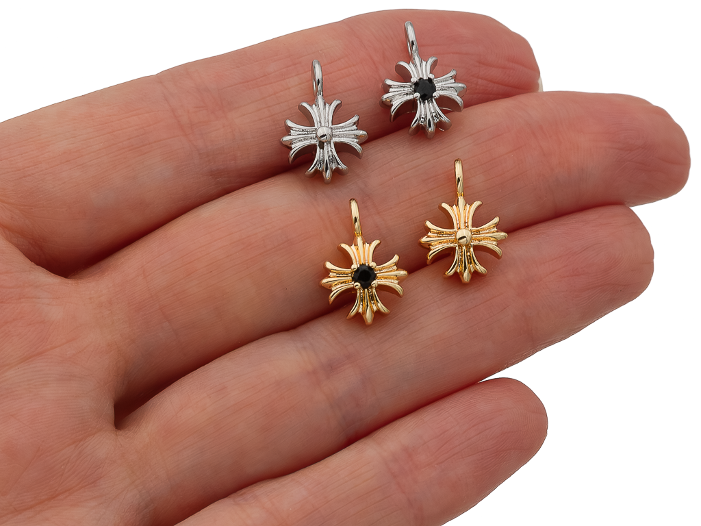 Небольшая, но эффектная подвеска в форме креста, украшенная черным фианитом хорошо будет смотреться на чокере, колье, цепочке.