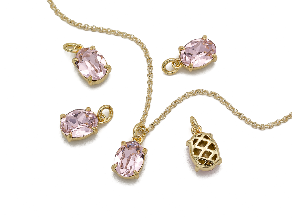 Небольшая подвеска овальной формы, украшенная кристаллом ювелирной огранки, отлично подойдет на чокер, колье, браслет, серьги.