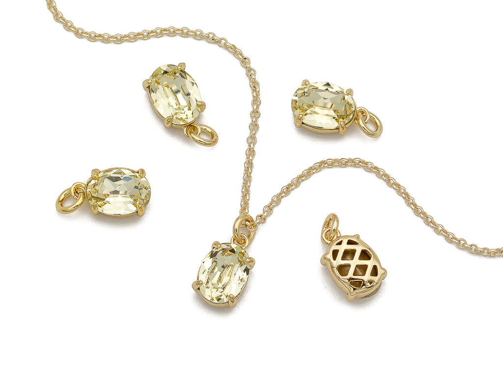 Подвеска Овальная с желтым кристаллом, 10мм