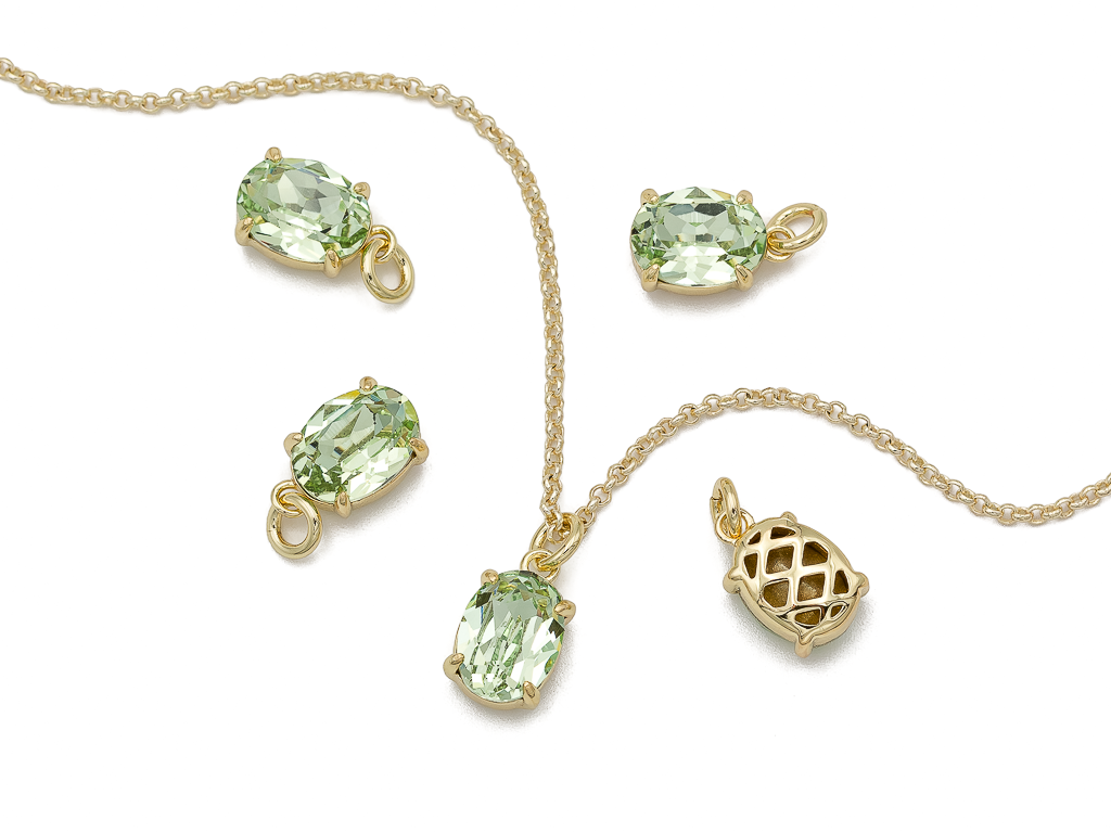 Небольшая подвеска овальной формы, украшенная кристаллом ювелирной огранки, отлично подойдет на чокер, колье, браслет, серьги.