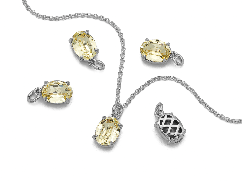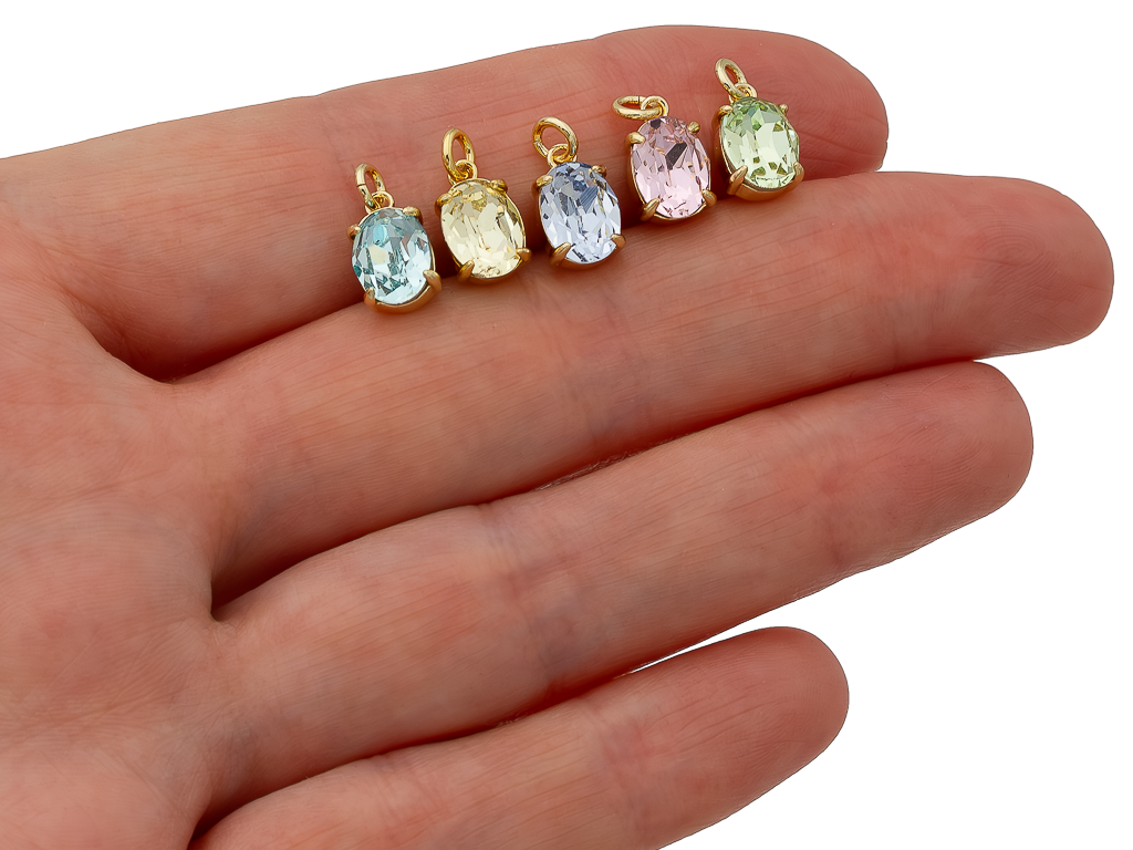 Небольшая подвеска овальной формы, украшенная кристаллом ювелирной огранки, отлично подойдет на чокер, колье, браслет, серьги.