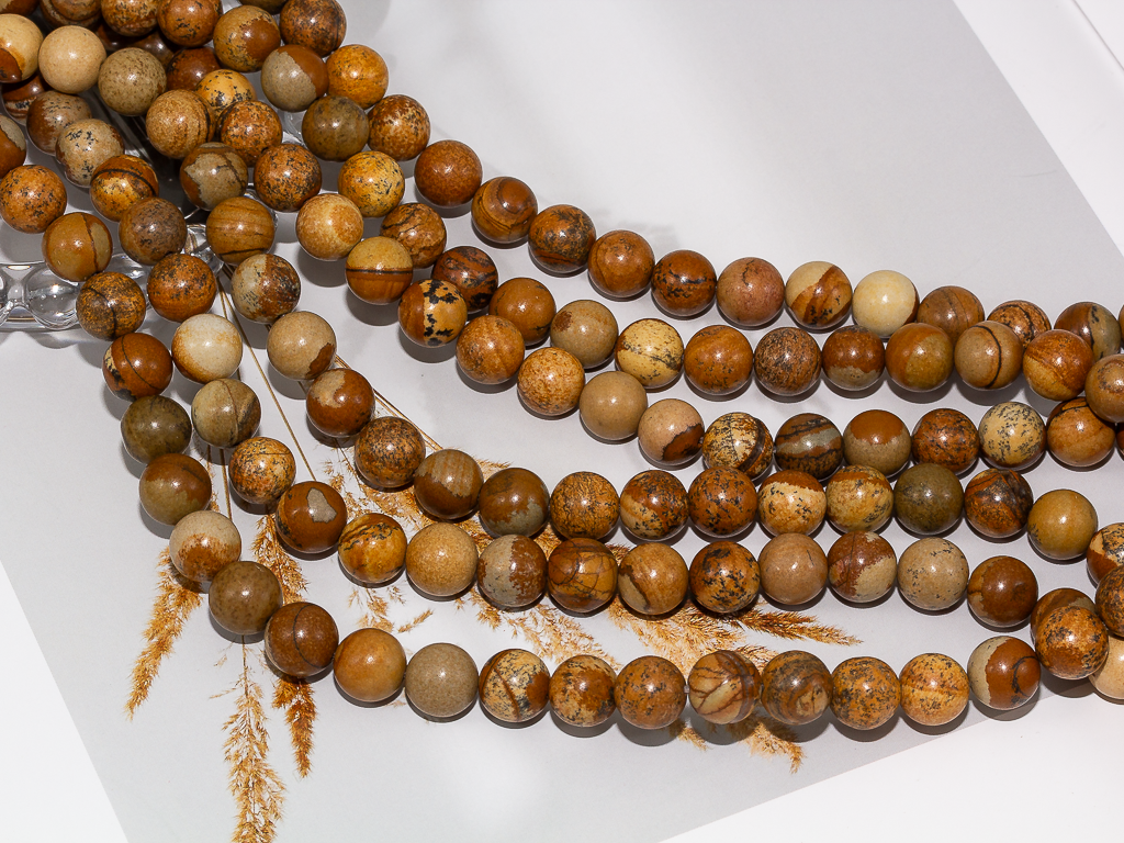 Круглые гладкие матовые бусины из яшмы можно использовать для любых видов украшений, идеально подойдет для браслета, колье, чокера, сережек. Камни в нитке неоднородны, могут немного отличаются по цвету и размеру.