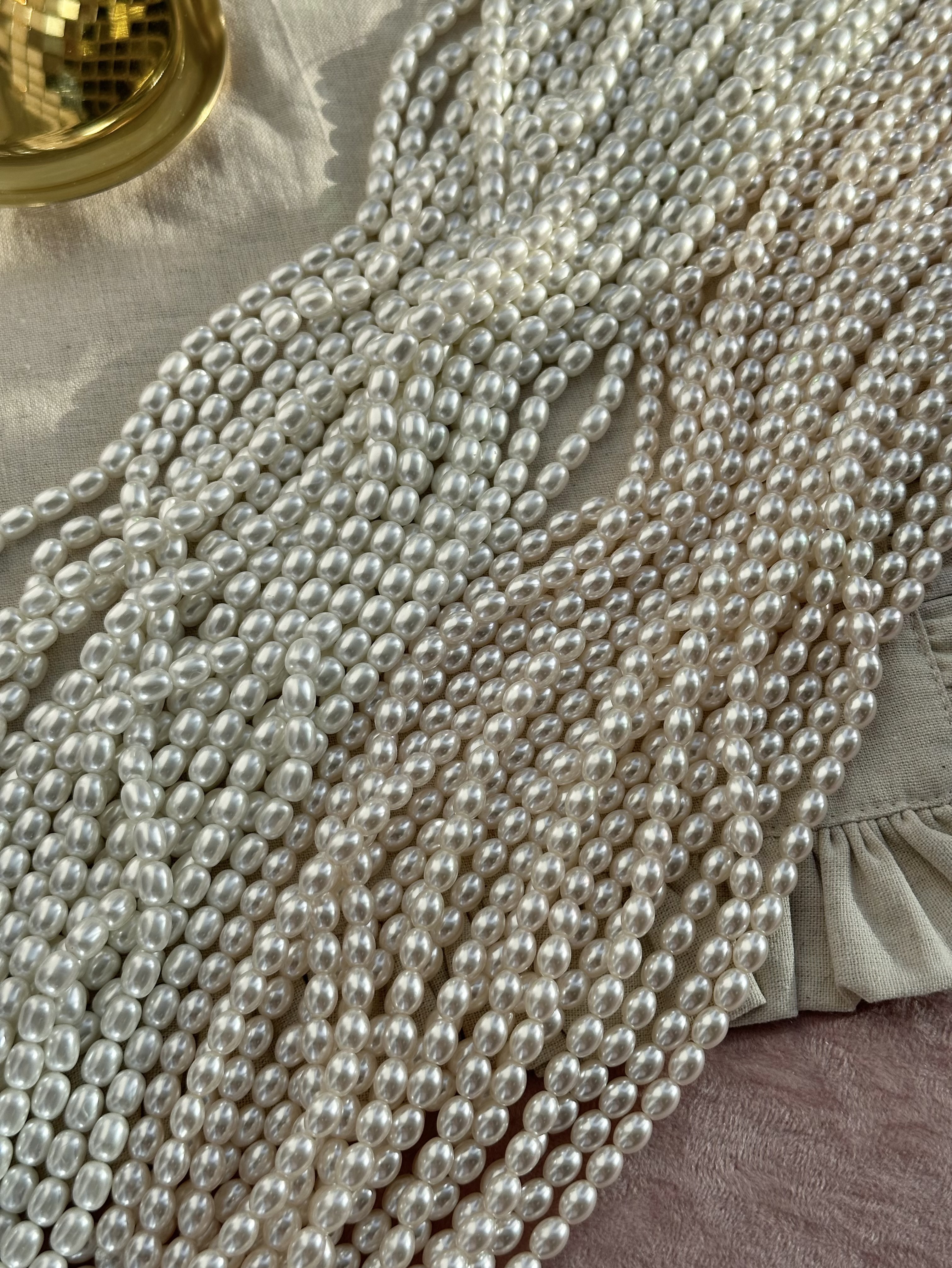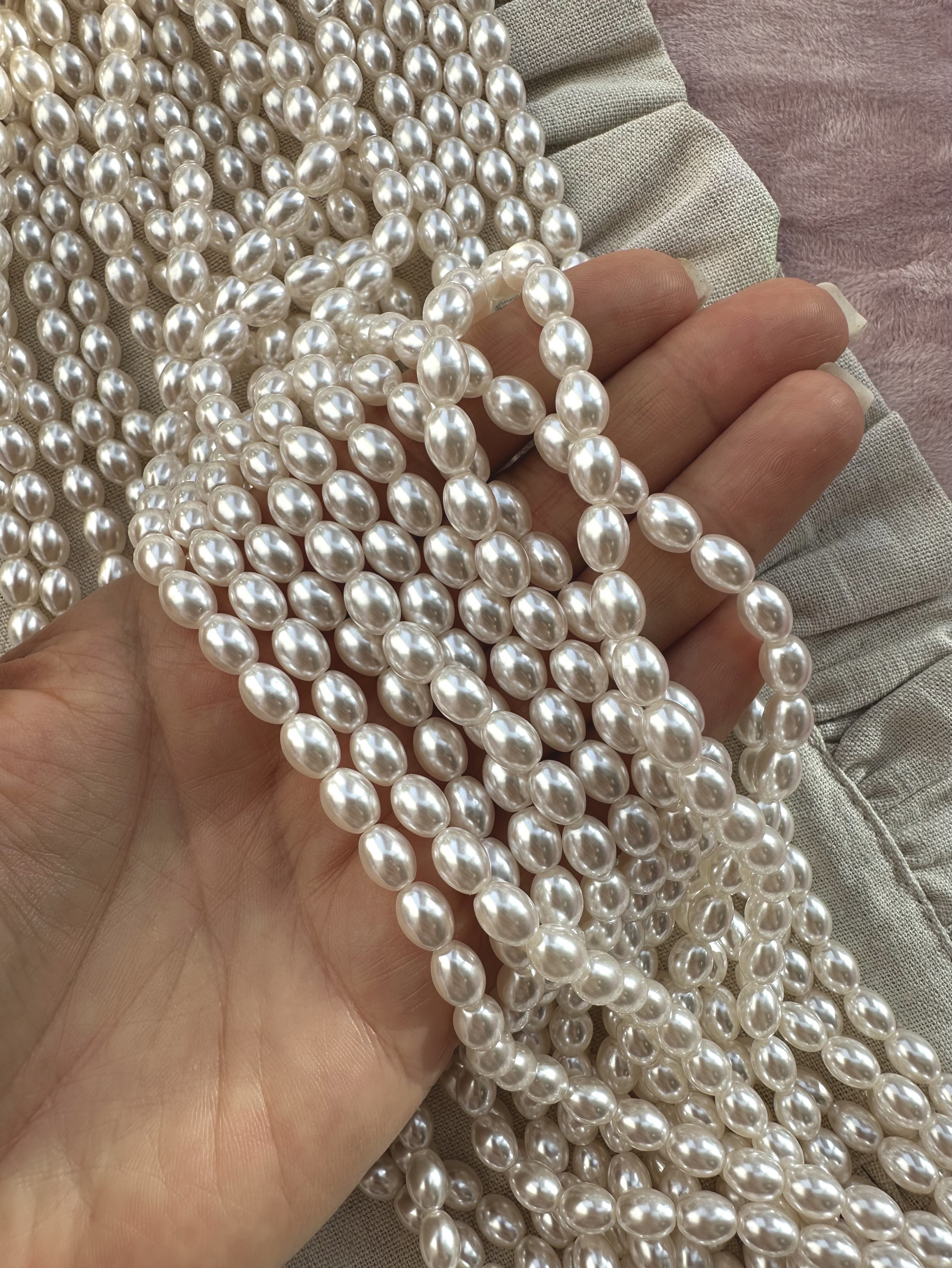 Небольшого размера бусины рисовидной формы идеально подойдут для создания колье, чокеров, браслетов, колец, сережек. Жемчуг не натуральный, имитация Майорки, хорошего качества.