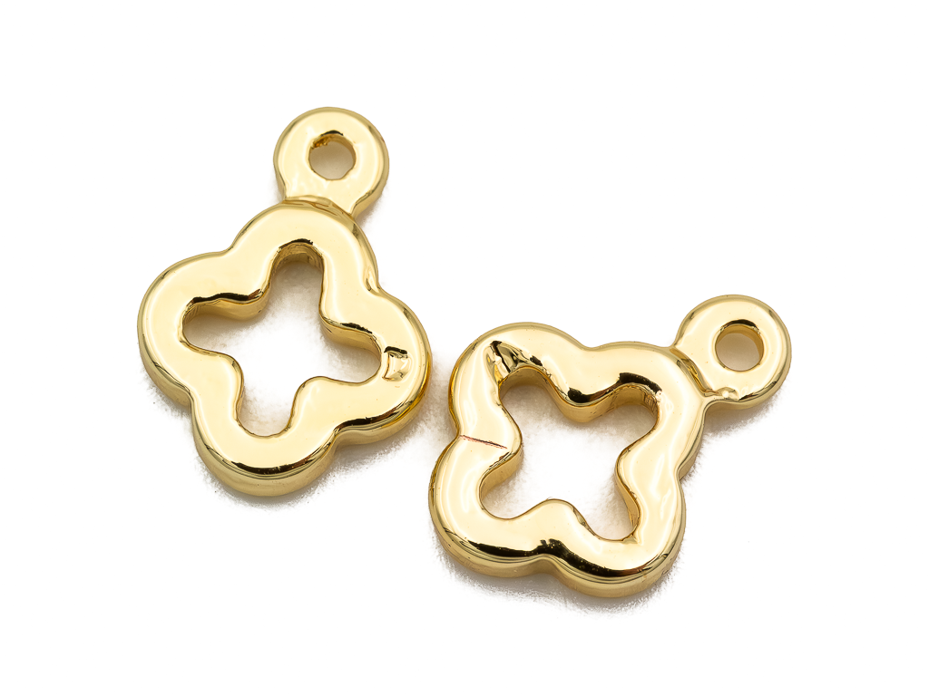 Маленькая, изящная подвеска в форме четырехлистного клевера хорошо будет смотреться на браслете, колье, чокере, серьгах, кольце.